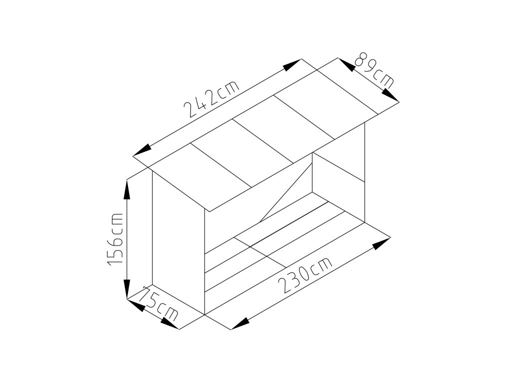 Rozmery prístrešku bez strechy: 230 x 146 x 75 cm