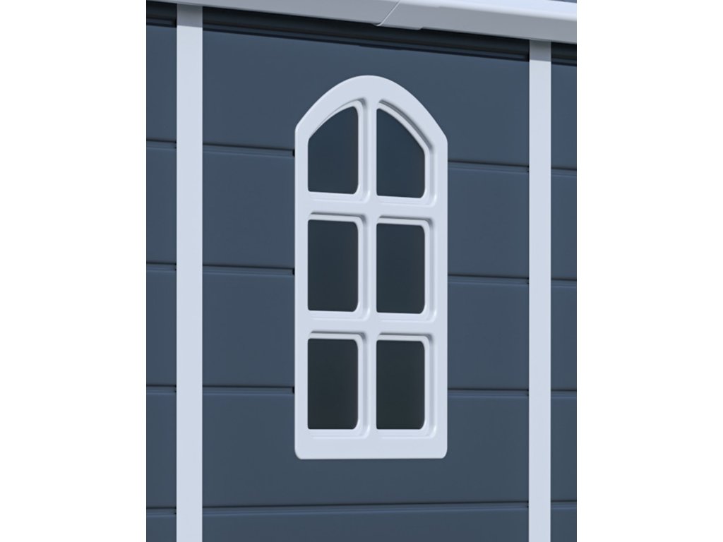 V žiadnom poriadnom záhradnom domčeku nesmie chýbať okienko. Ani u toho nášho nechýba, navyše si ho môžete umiestniť kam chcete. Neobmedzujte sa kvôli dostatku svetla a nerozmýšľajte, či domček postaviť k stene domu, alebo do voľného priestoru. Dostatočné množstvo svetla vás nebude limitovať. Okno si jednoducho umiestnite na pravú alebo ľavú stranu domčeka, podľa aktuálnej potreby.