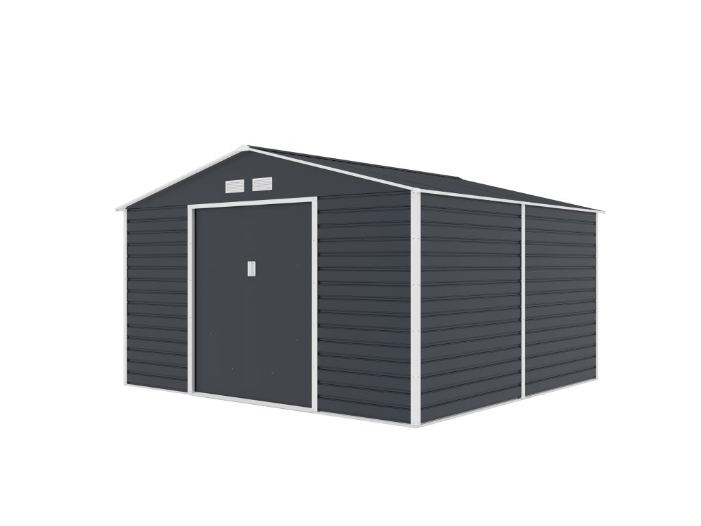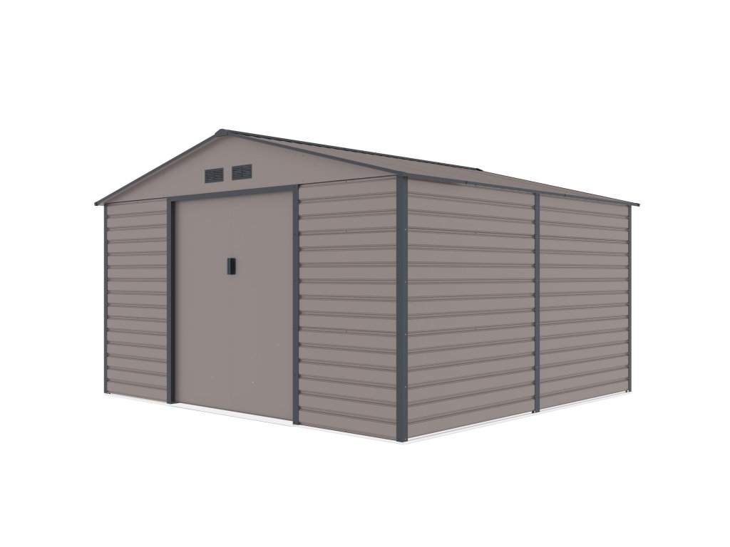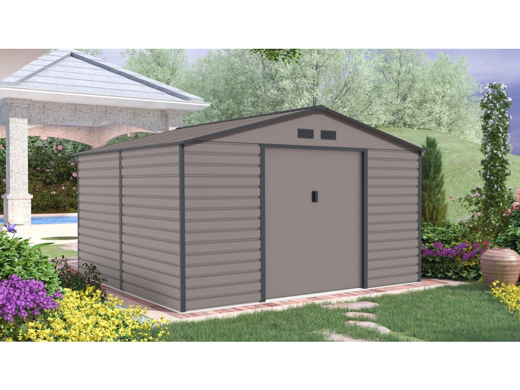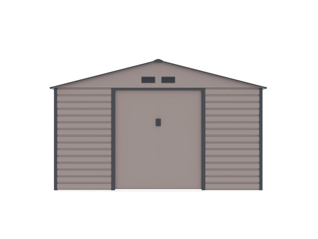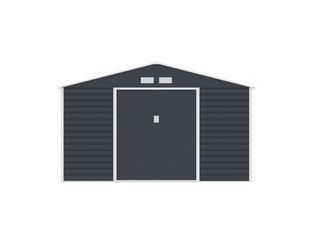 Záhradné domčeky na náradie v modernom dizajne sa hodia do každej záhrady. Vstupné dvere sú dostatočne široké, preto do domčeka pohodlne uložíte svoje náradie, záhradný fúrik aj vonkajší nábytok.