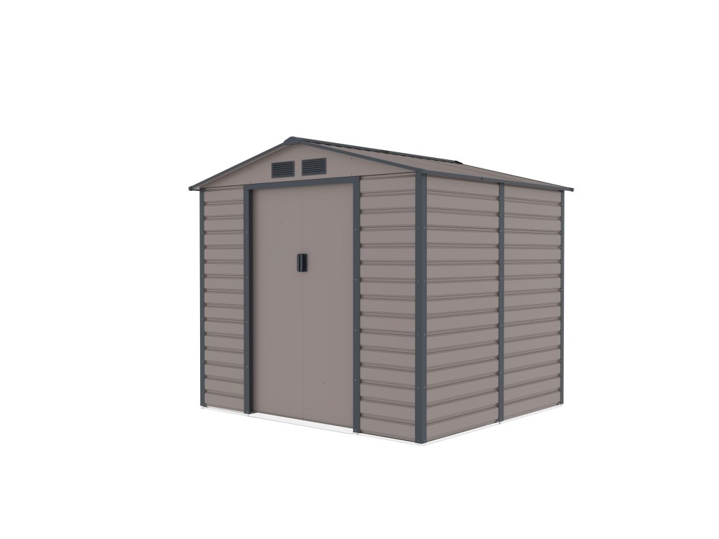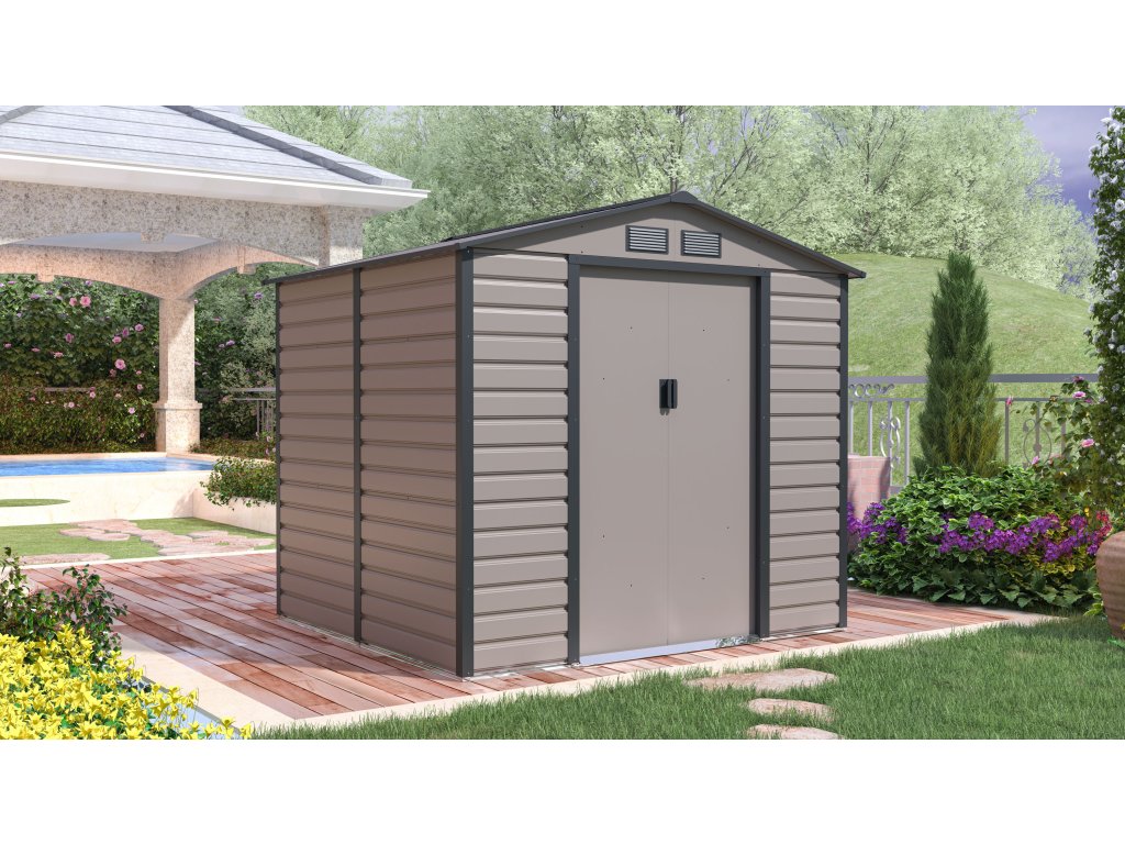 Záhradné domčeky na náradie v modernom dizajne sa hodia do každej záhrady. Vstupné dvere sú dostatočne široké, preto do domčeka pohodlne uložíte svoje náradie, záhradný fúrik aj vonkajší nábytok.