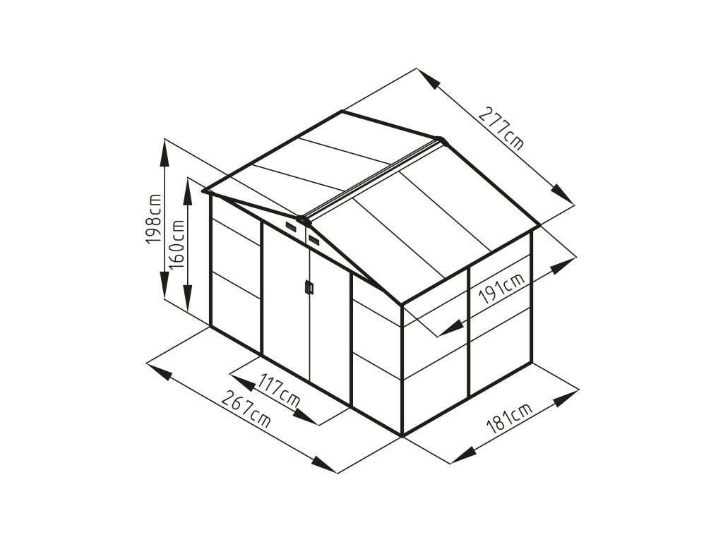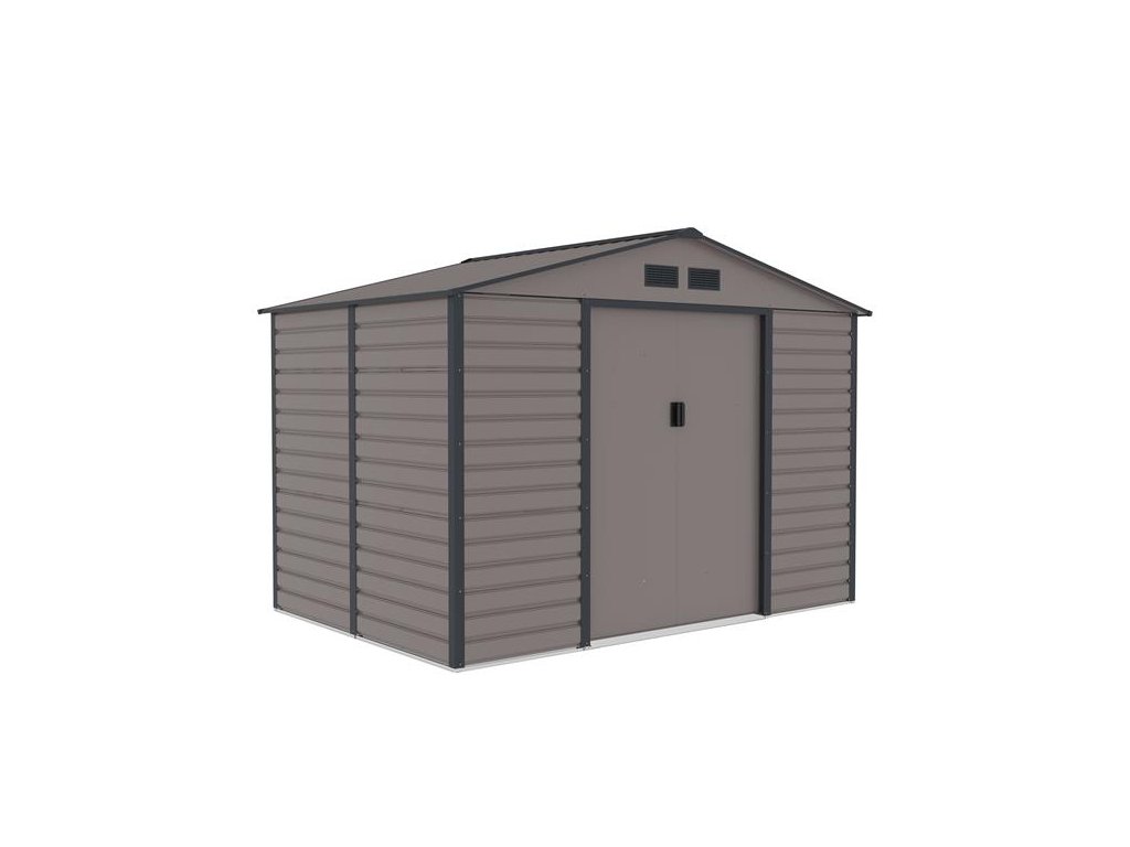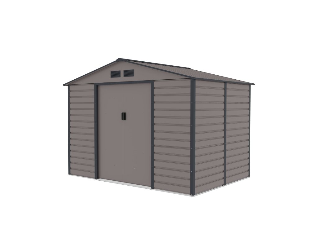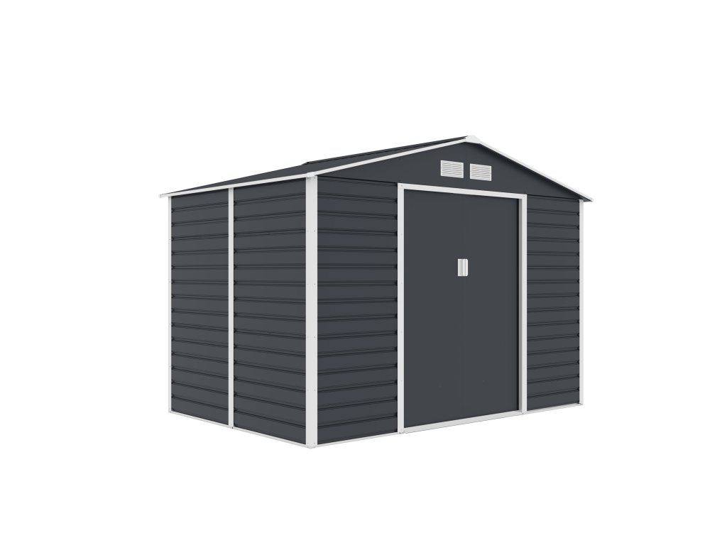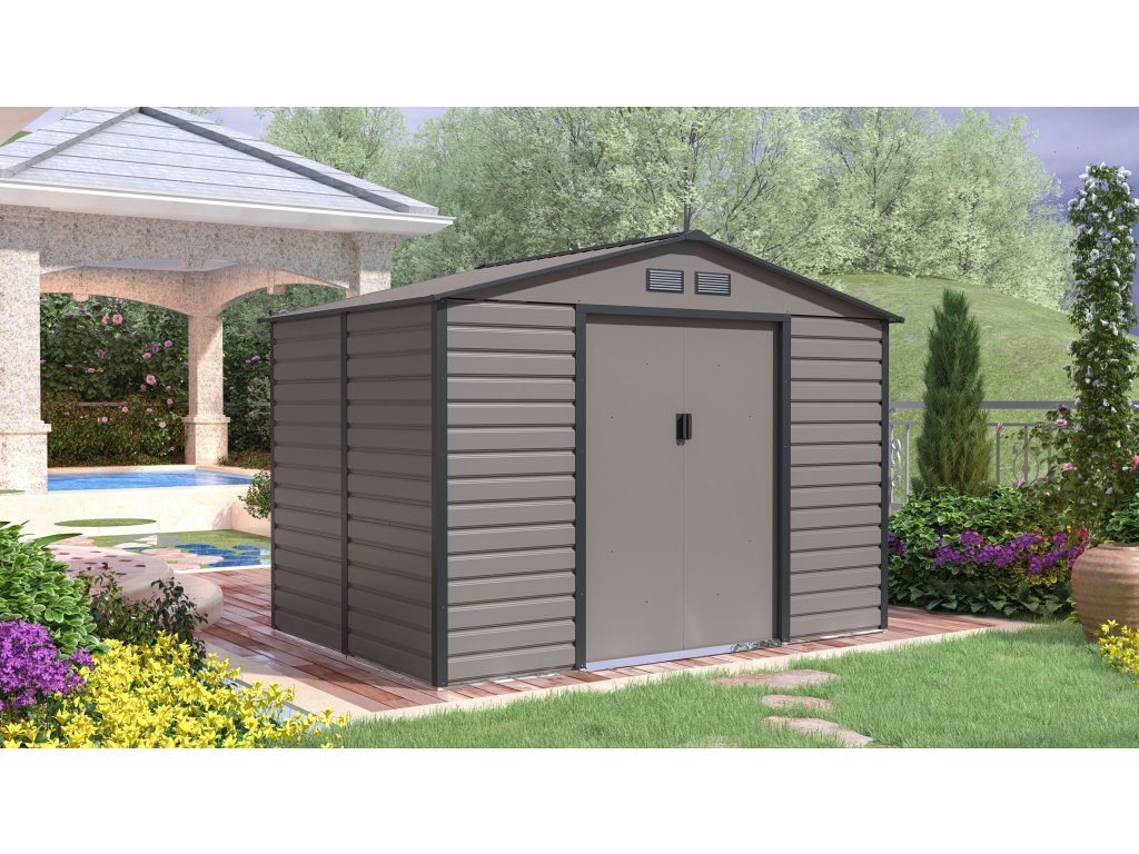 Záhradné domčeky na náradie v modernom dizajne sa hodia do každej záhrady. Vstupné dvere sú dostatočne široké, preto do domčeka pohodlne uložíte svoje náradie, záhradný fúrik i vonkajší nábytok.