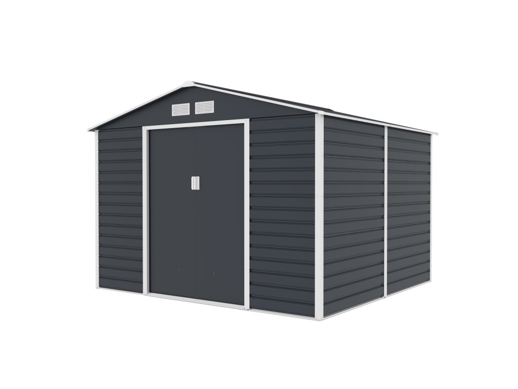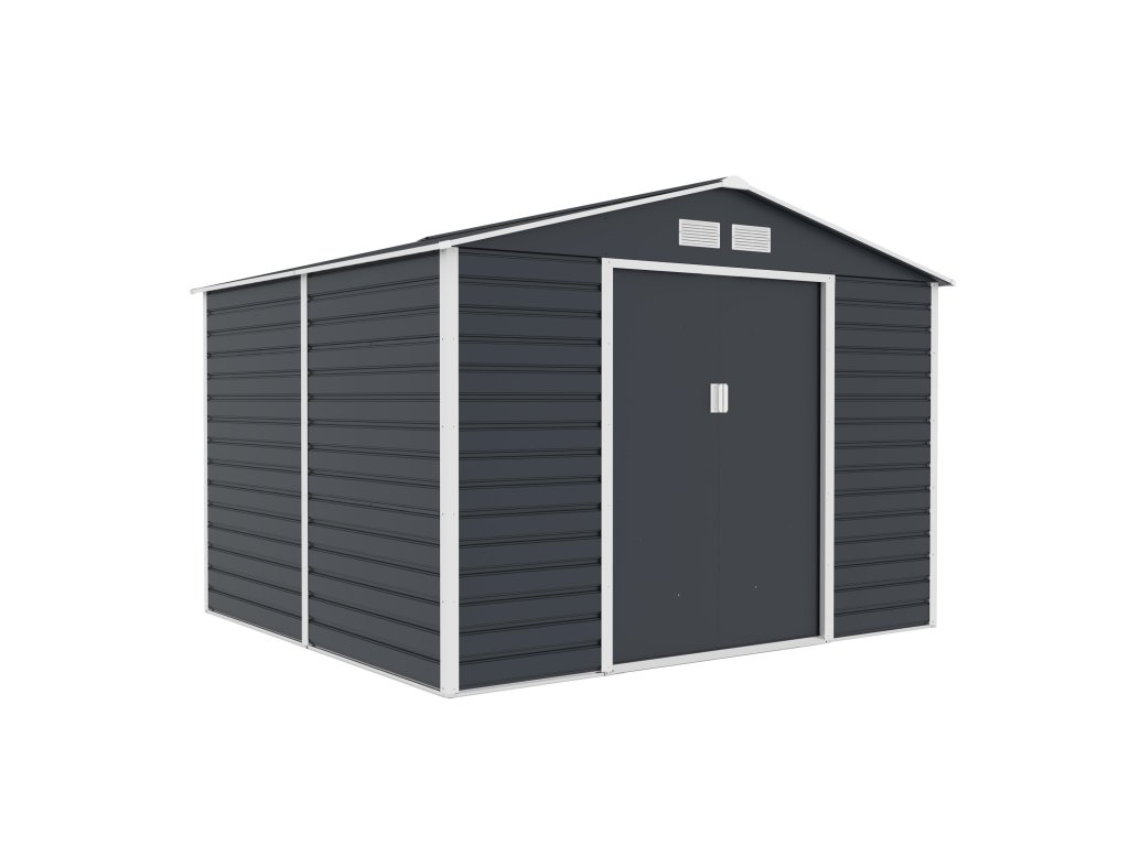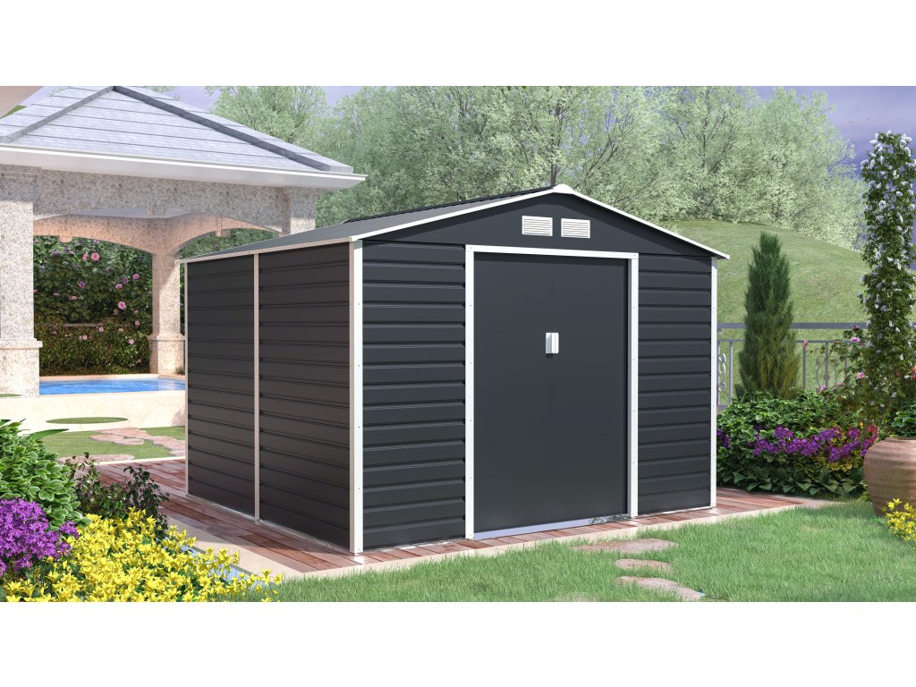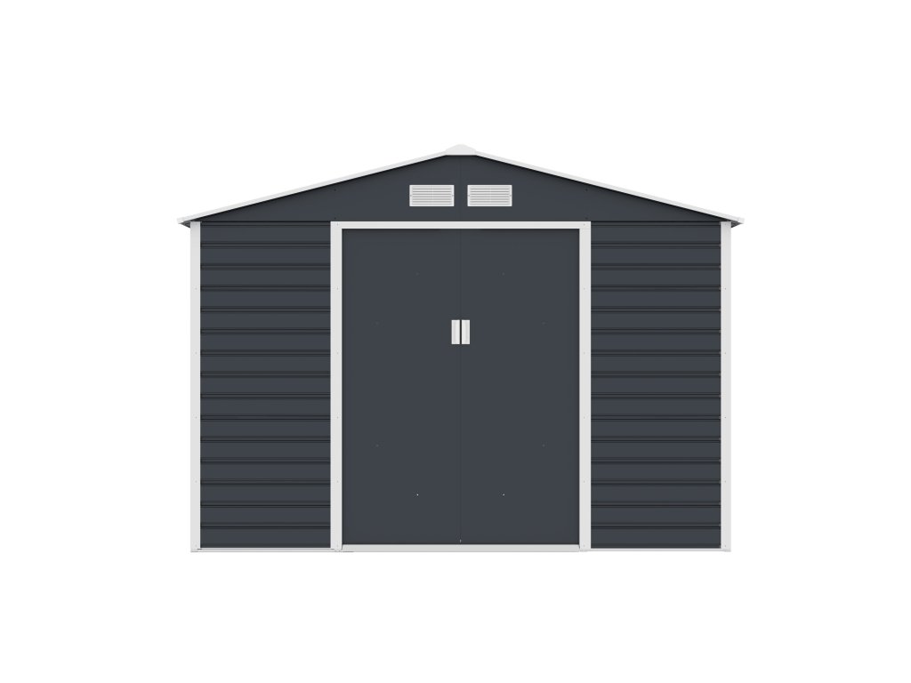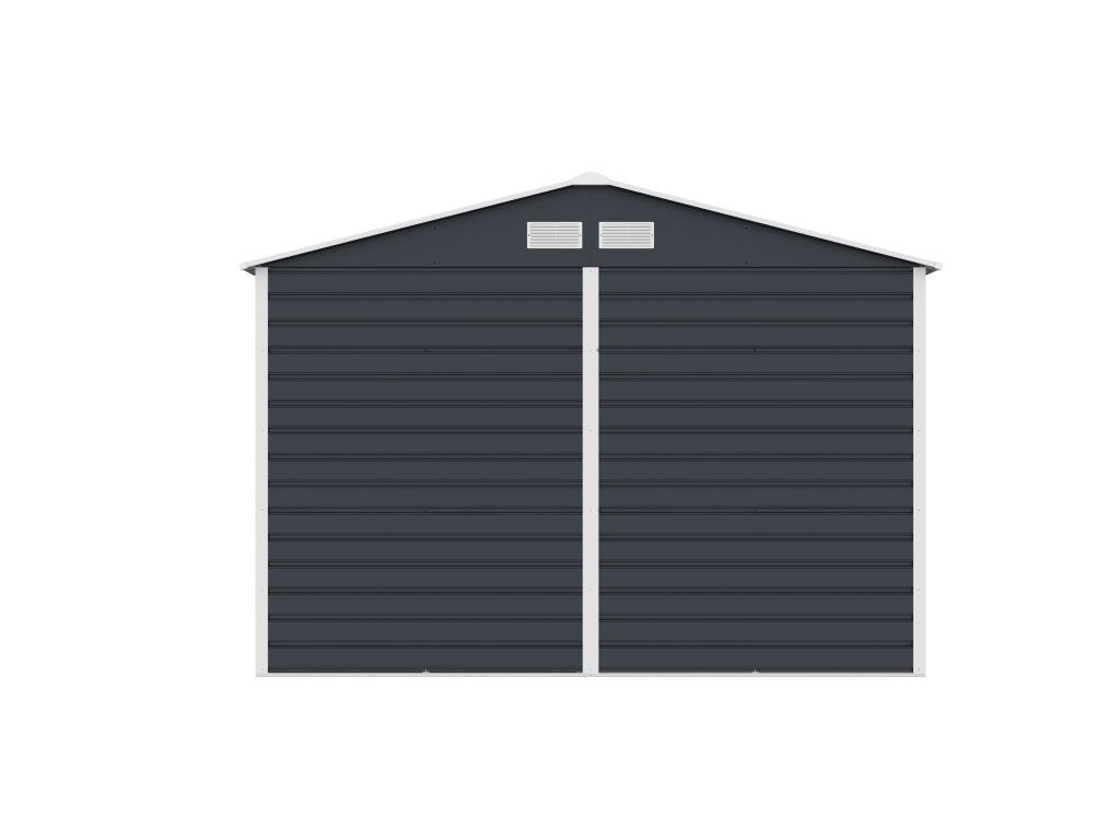 Záhradné domčeky na náradie v modernom dizajne sa hodia do každej záhrady. Vstupné dvere sú dostatočne široké, preto do domčeka pohodlne uložíte svoje náradie, záhradný fúrik i vonkajší nábytok.