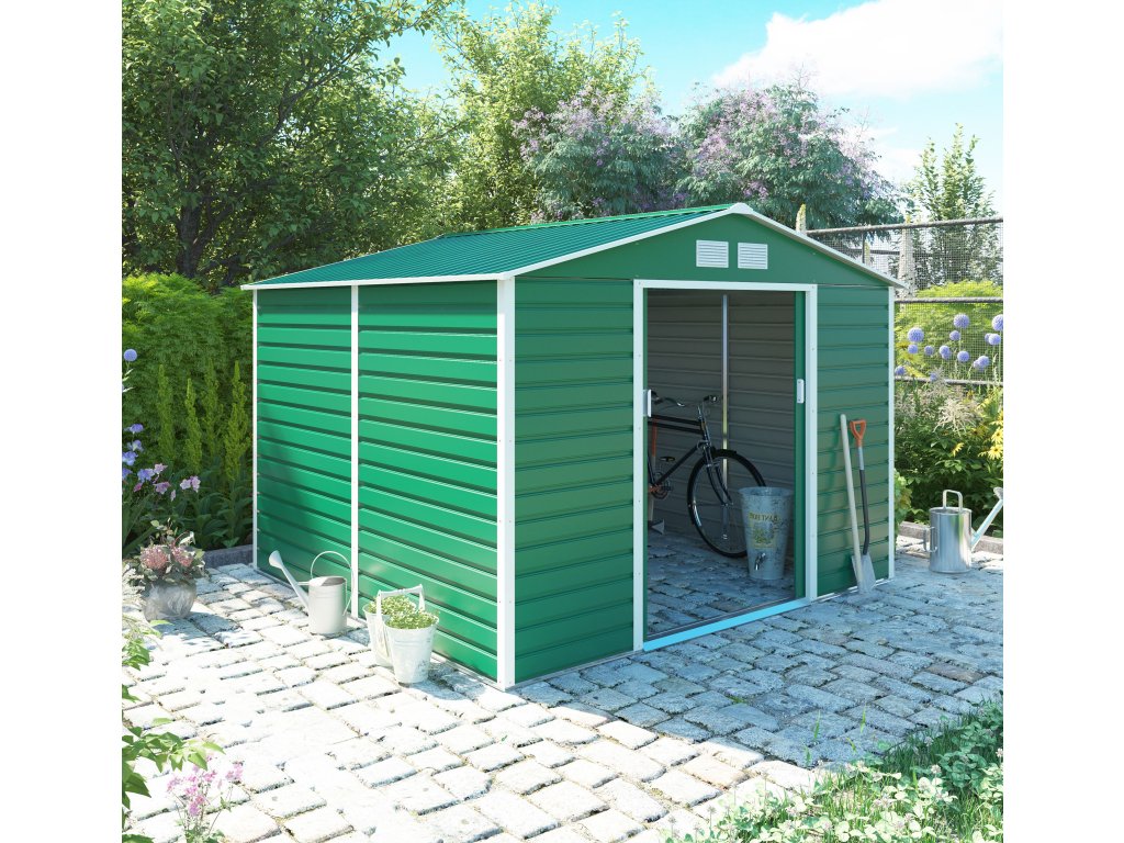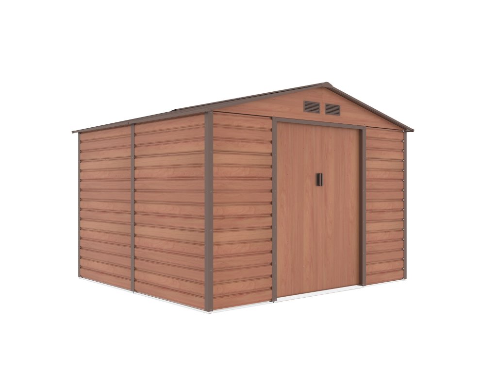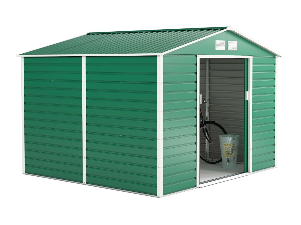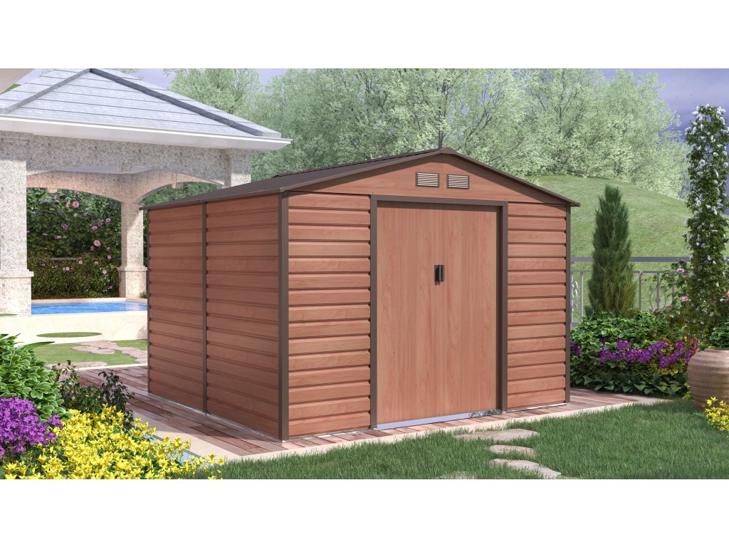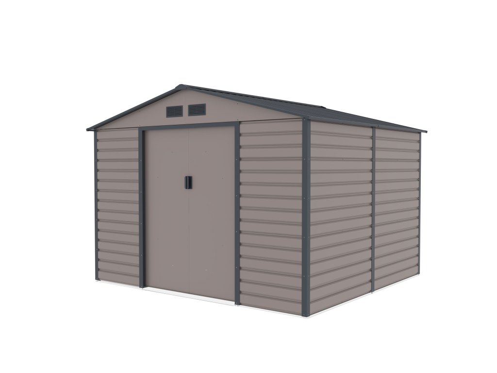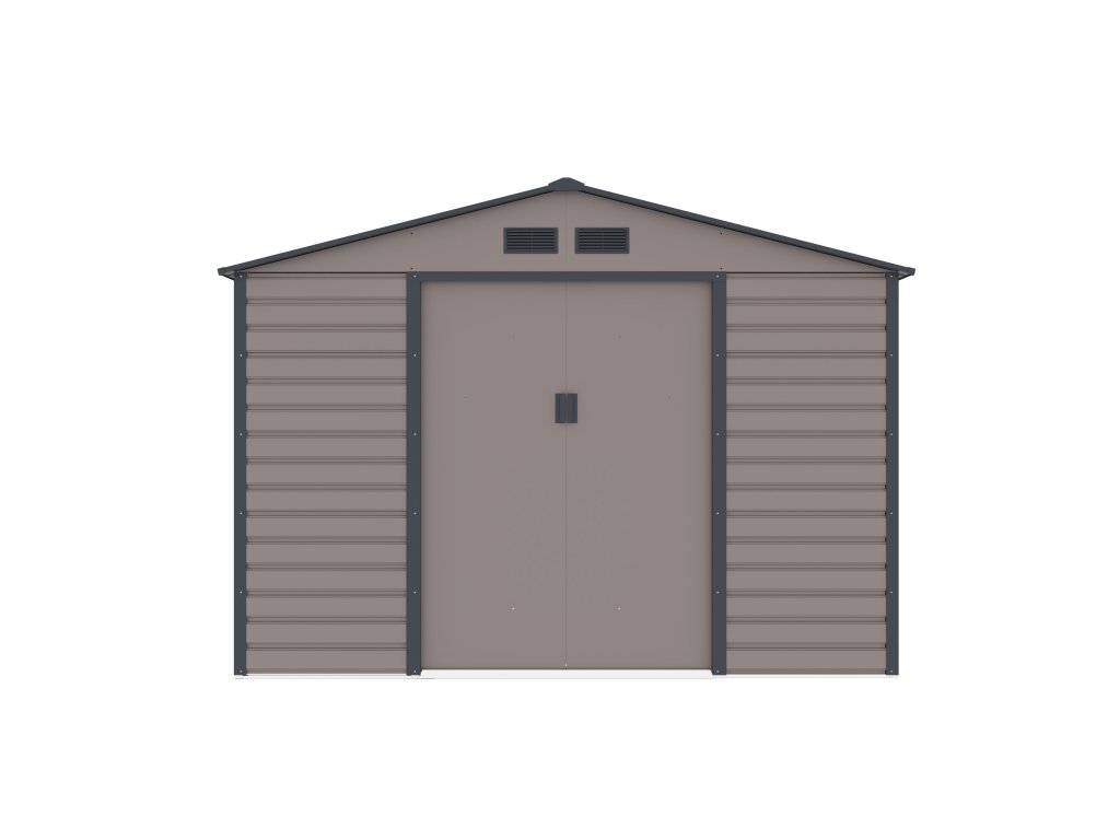 Záhradné domčeky na náradie v modernom dizajne sa hodia do každej záhrady. Vstupné dvere sú dostatočne široké, preto do domčeka pohodlne uložíte svoje náradie, záhradný fúrik i vonkajší nábytok.