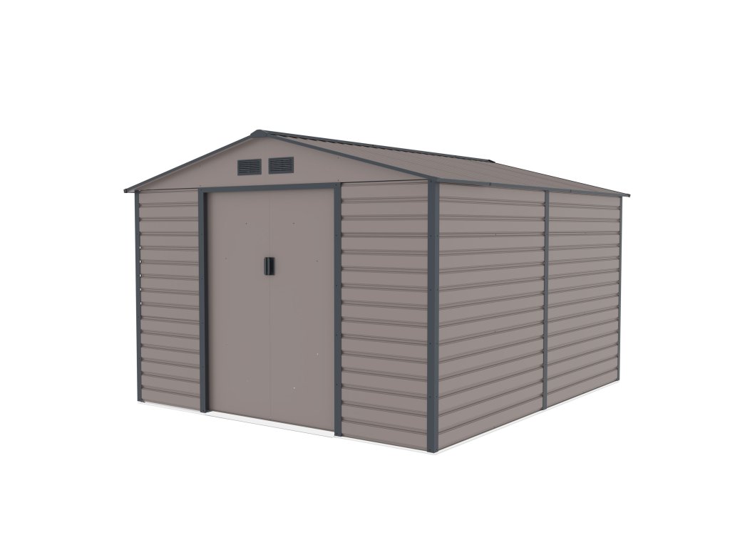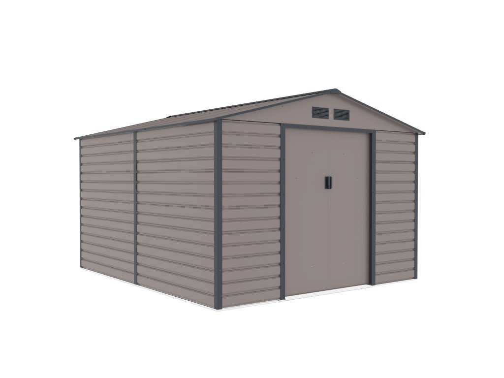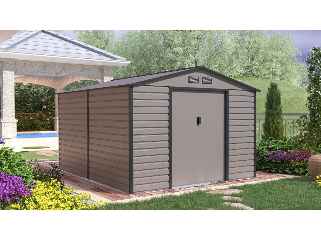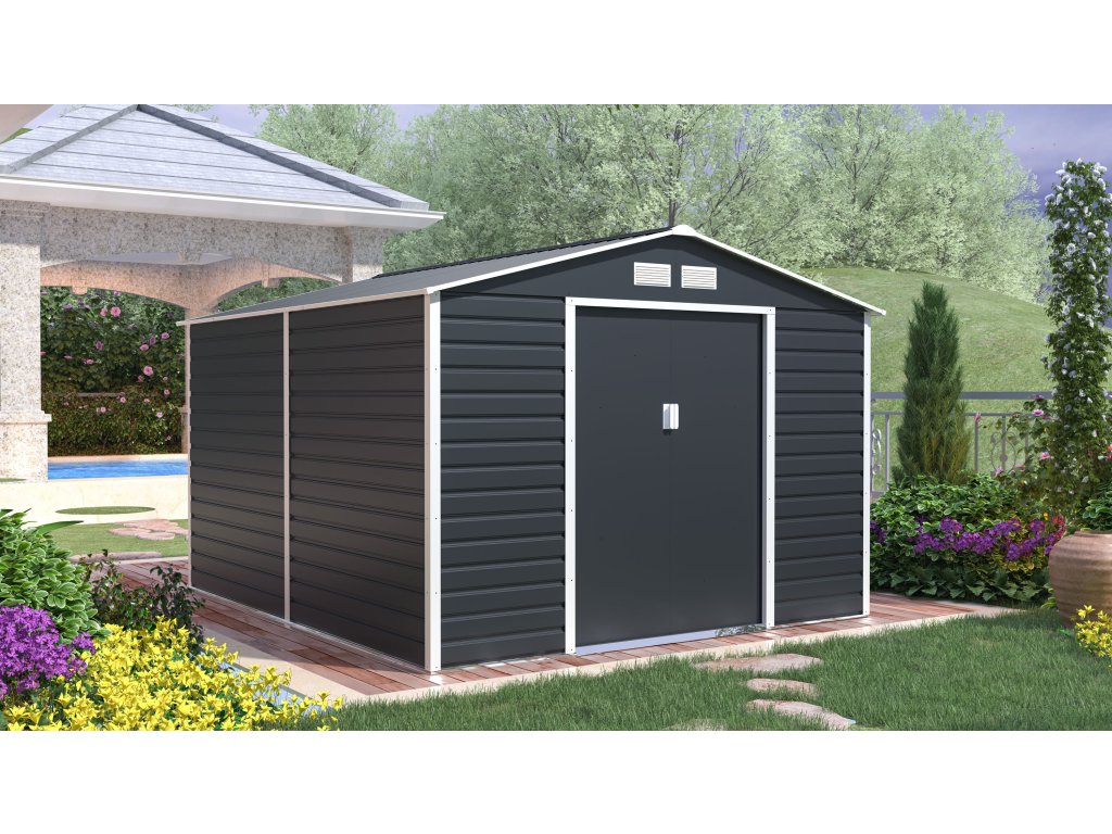 Záhradné domčeky na náradie v modernom dizajne sa hodia do každej záhrady. Vstupné dvere sú dostatočne široké, preto do domčeka pohodlne uložíte svoje náradie, záhradný fúrik i vonkajší nábytok.