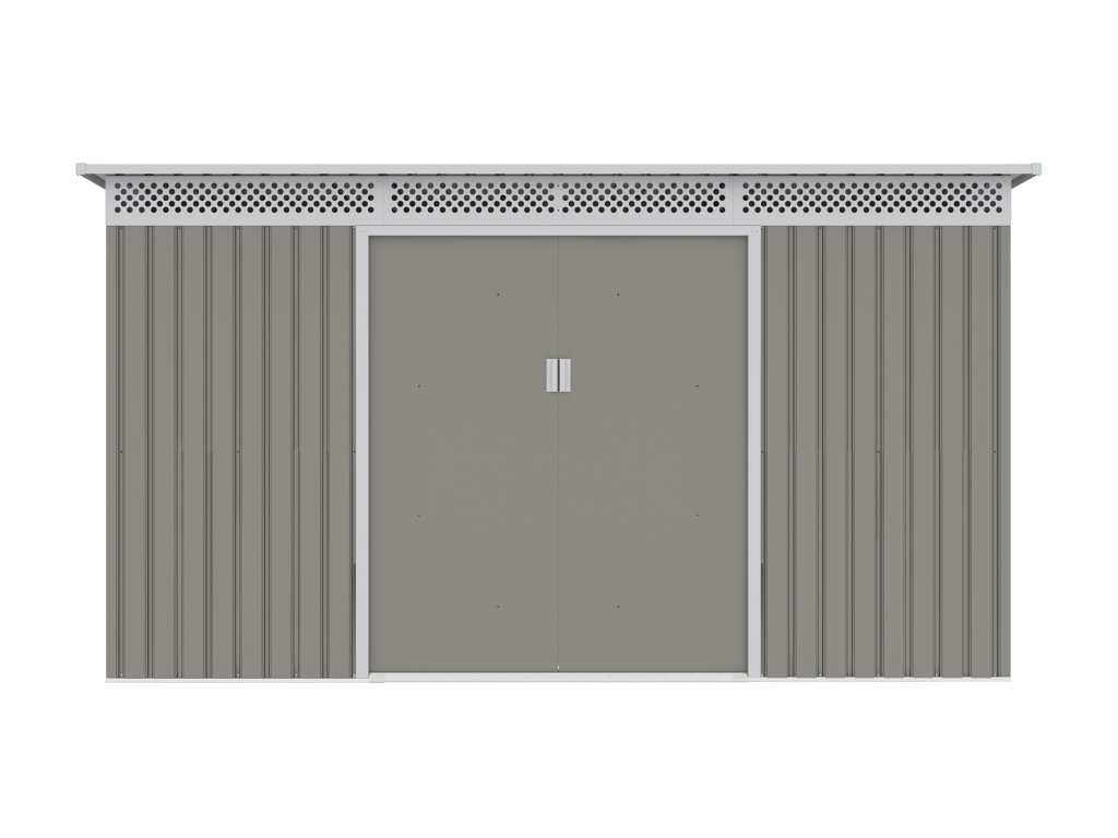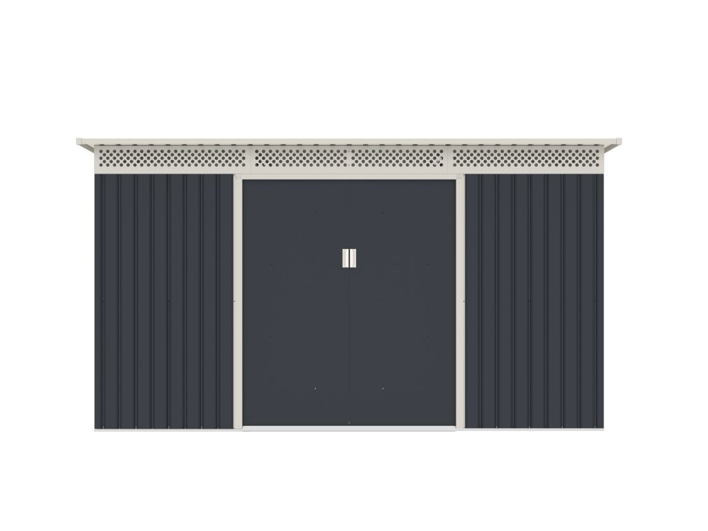 Záhradný domček GRAH 700 má dvojkrídlové dvere o celkovej šírke 138 cm. Vstup do domčeka je tak naozaj pohodlný, aj keď nesiete alebo vynášate objemnejšiu vec. Každé krídlo posuvných dverí má madlo na jednoduché otváranie. Dverné madlo je pripravené aj na umiestnenie visiaceho zámku.