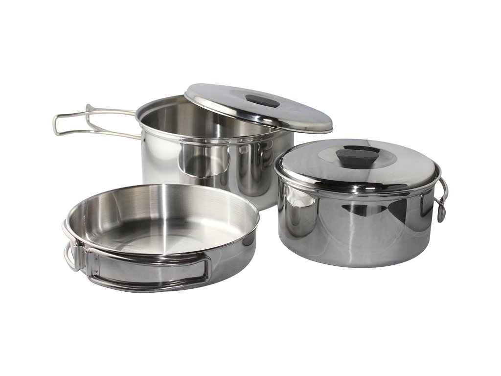 - Sada hrncov obsahuje hrniec, hrniec s pokrievkou, panvicu s pokrievkou a nylonovú tašku