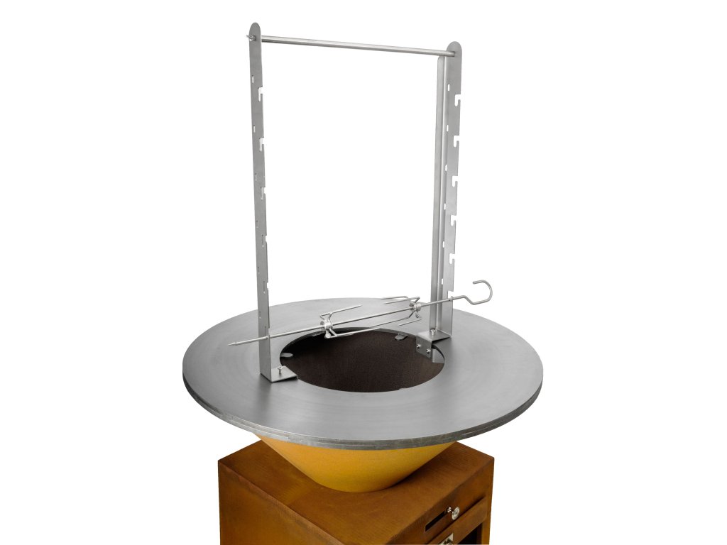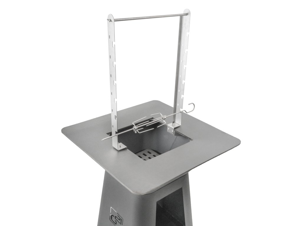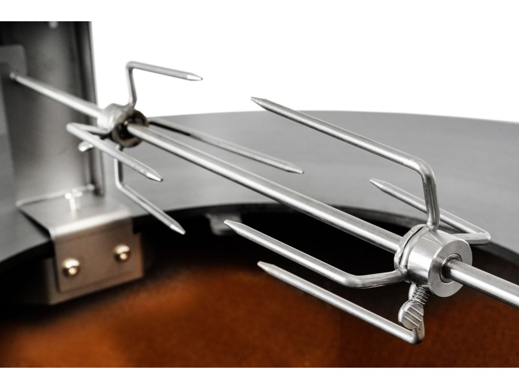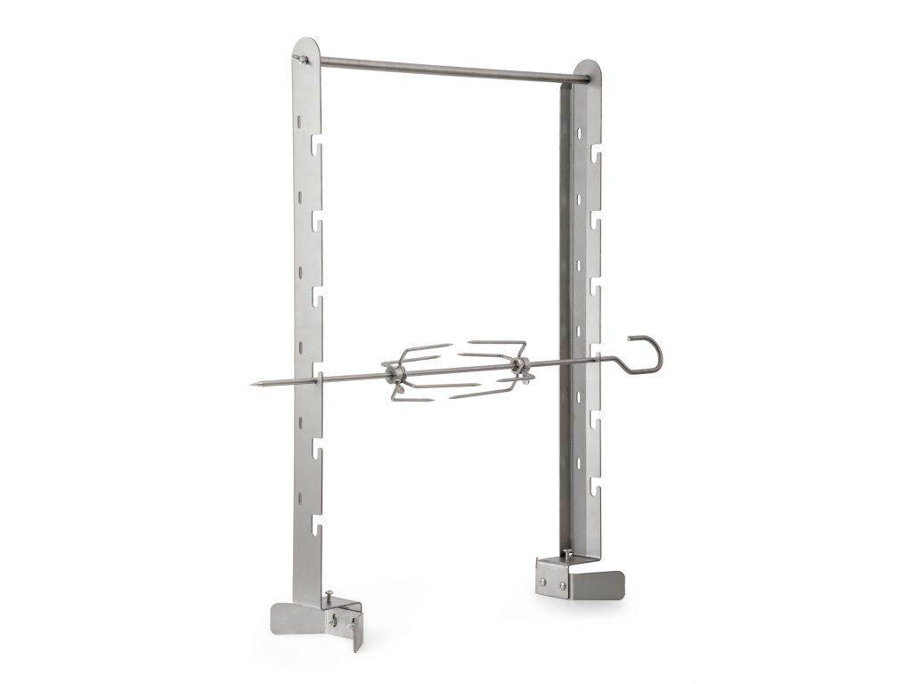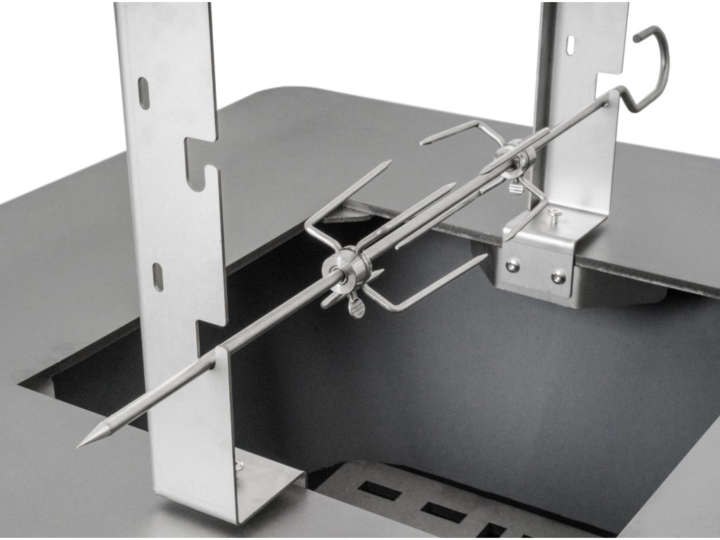 Celá zostava pre grily G21 Montana alebo Oregon je vyrobená z vysoko kvalitnej a masívnej nerezovej ocele, čo dokazuje aj jej hmotnosť 4 kg. Nerezová oceľ je odolná, ľahko sa čistí a ihla z nerezu dobre rozvádza teplo. Vďaka 6 polohám na stojane si môžete zvoliť výšku, v akej chcete potraviny na ihle grilovať a využiť tak rôzne stupne žiaru pre dokonalú prípravu.