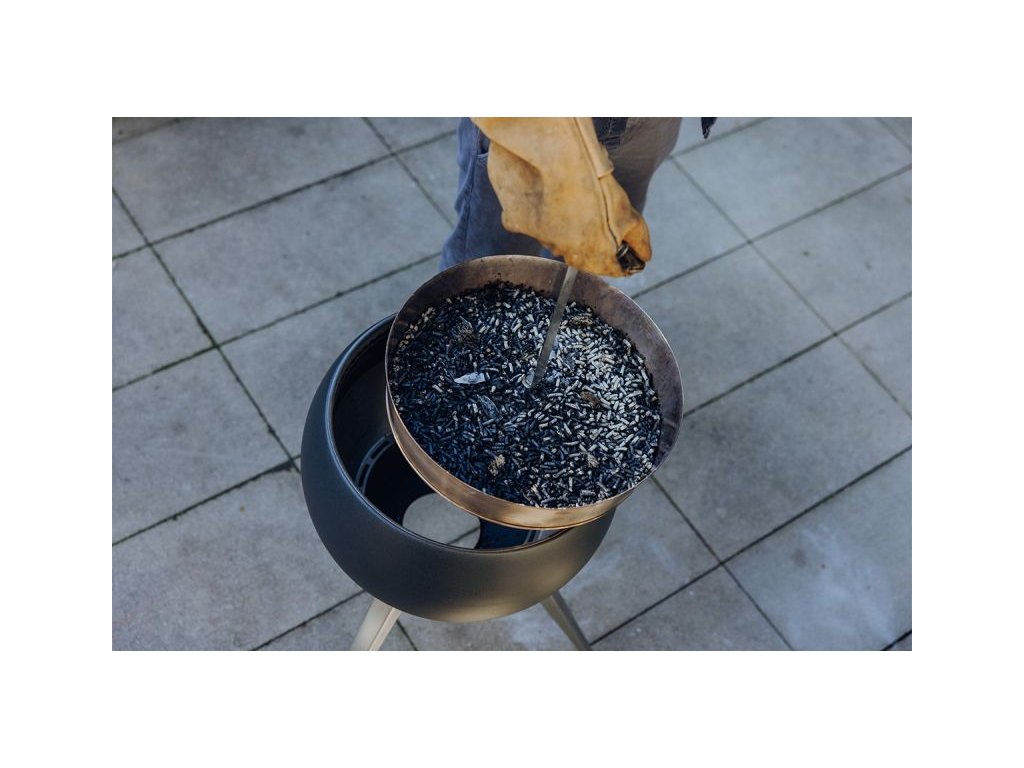 - Jednoduché vyprázdnenie a opätovné zapálenie ohňa. Pomocou zdviháka nadstavca môžete bezpečne vybrať popolník spolu so zvyškami peliet z koša na oheň. Po jeho riadnom vyprázdnení (alebo výmene za druhý popolník) je možné MOON ihneď doplniť – a večer s ohňom môže pokračovať.