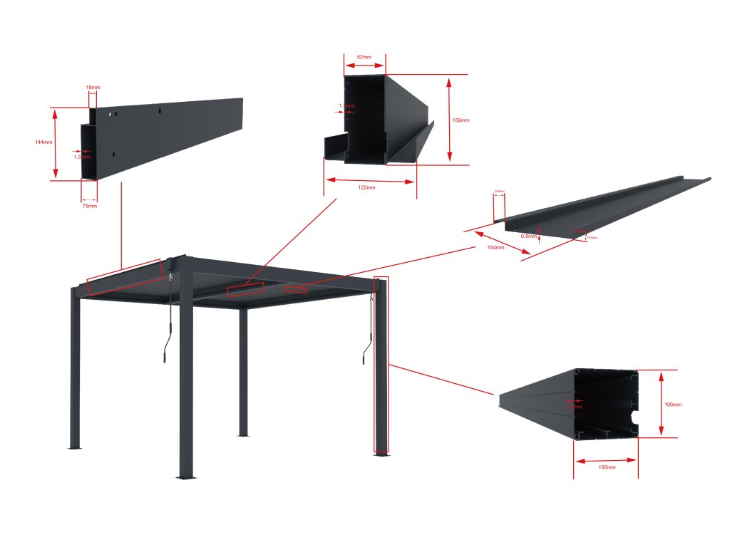 - Široká škála dokúpiteľného príslušenstva pre dokonalé prispôsobenie pergoly vašim potrebám