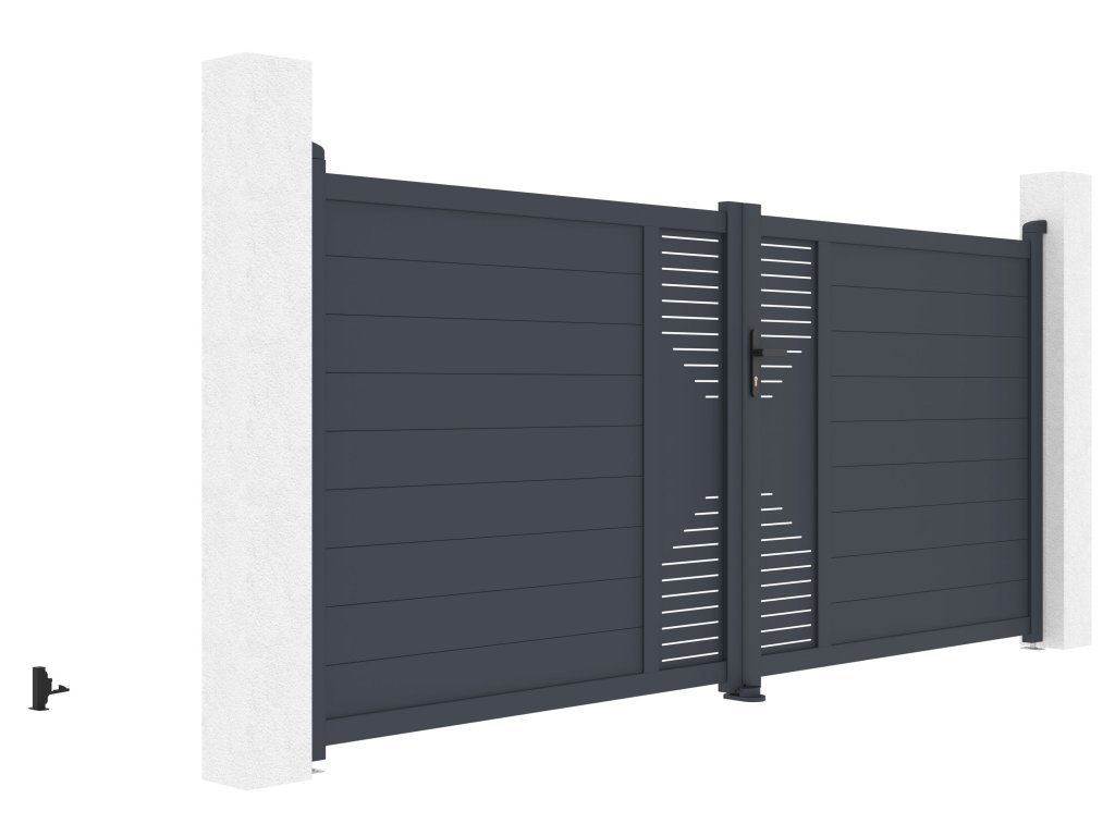 Dvojkrídlovú vjazdovú bránu Marion sme vyrobili z ľahkého, pritom ale veľmi spoľahlivého a hlavne bezúdržbového hliníka. Je odolný voči prasknutiu i prehnutiu, nehrdzavejúci a antracitový odtieň, nanesený práškovým nástrekom pre väčšiu odolnosť, dodáva vjazdovým bránam atraktivitu a stálofarebnosťt. Zosilnený profil hliníkovej brány Marion vám navyše v budúcnosti umožní montáž elektrického otvárania.