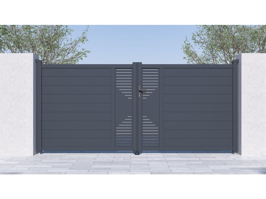 - ozdobný CNC panel dodáva vjazdovým bránam atraktivitu