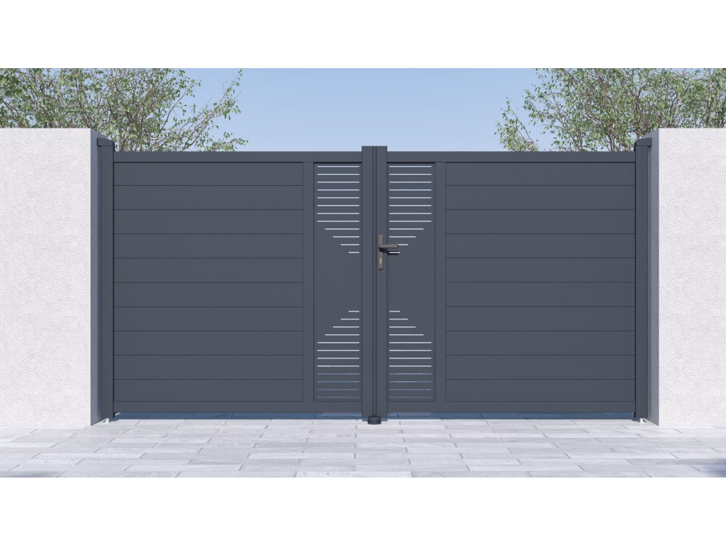 - ozdobný CNC panel dodáva vjazdovým bránam atraktivitu