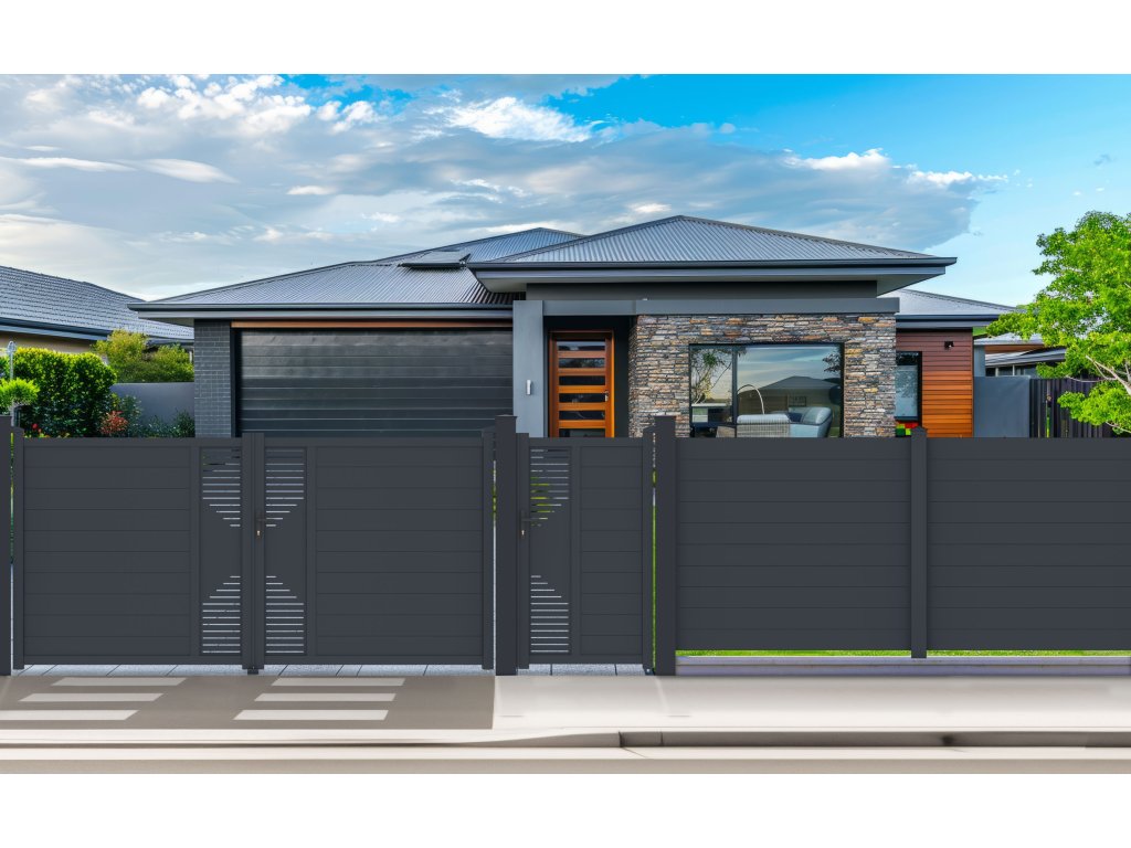 - kombinuje dostatok súkromia s moderným dizajnom, takže brána s otváraním dovnútra pristane každému typu oplotenej stavby