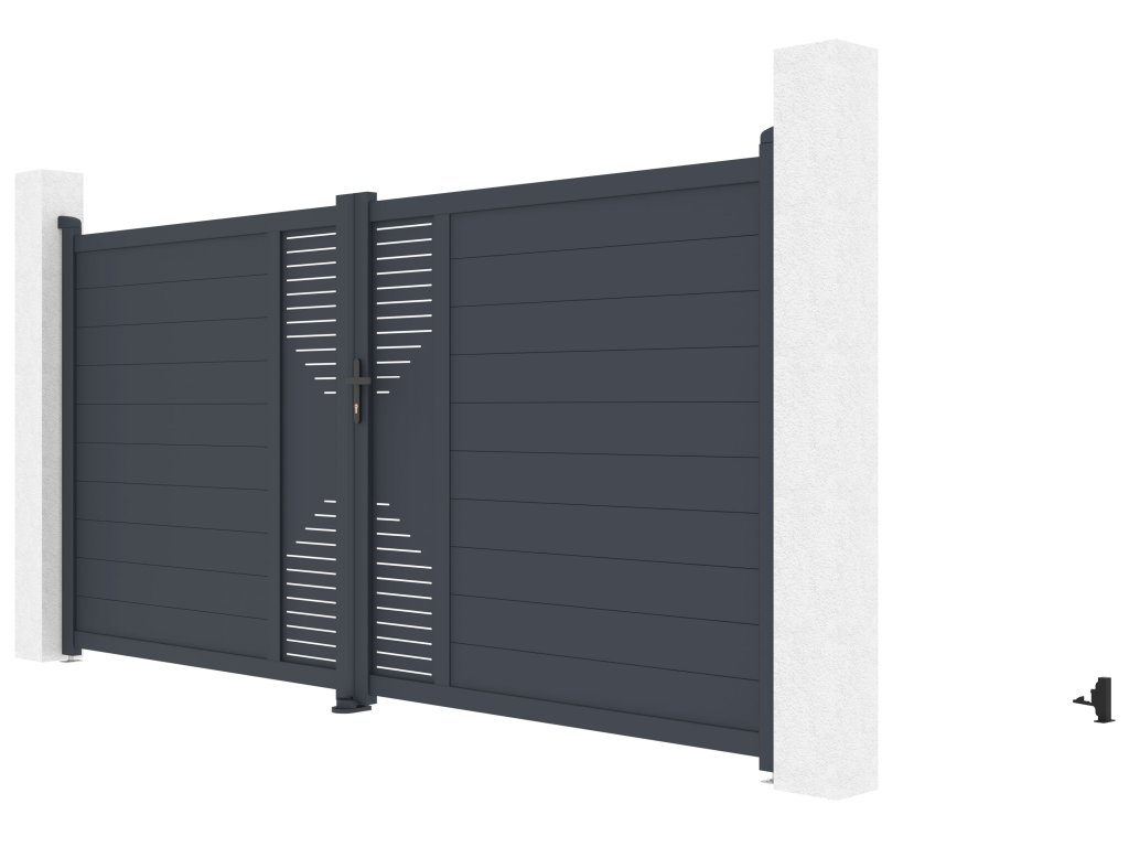 Dvojkrídlovú vjazdovú bránu Marion sme vyrobili z ľahkého, pritom ale veľmi spoľahlivého a hlavne bezúdržbového hliníka. Je odolný voči prasknutiu i prehnutiu, nehrdzavejúci a antracitový odtieň, nanesený práškovým nástrekom pre väčšiu odolnosť, dodáva vjazdovým bránam atraktivitu a stálofarebnosťt. Zosilnený profil hliníkovej brány Marion vám navyše v budúcnosti umožní montáž elektrického otvárania.