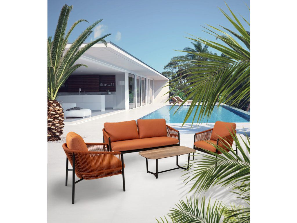 - 1x 3-sedačka OSAKA oranžová 165x73x70 cm, hliníkový rám matný čierny, vankúše 277gr/m² olefin oranžová, ø5 mm lanový výplet oranžová terakota