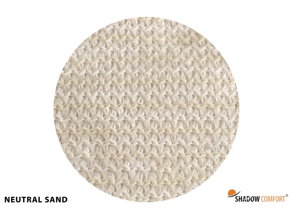 Slnečná plachta je vyrobená z veľmi odolného tkaného polyetylénu HDPE (High-Density PolyEthylen), z ktorého sa vyrábajú aj vodovodné plastové trubky. Poskytuje až 95% ochranu pred UV žiarením. Látka je hrubo tkaná (vrecovina), stálofarebná, mierne dierkovaná a prepúšťa vodu. Slúži ako ochrana proti slnku na vytvorenie tieňa, nie proti dažďu!