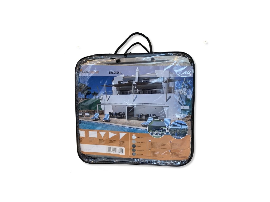Slnečná plachta je vyrobená z veľmi odolného tkaného polyetylénu HDPE (High-Density PolyEthylen), z ktorého sa vyrábajú aj vodovodné plastové trubky. Poskytuje až 95% ochranu pred UV žiarením. Látka je hrubo tkaná (vrecovina), stálofarebná, mierne dierkovaná a prepúšťa vodu. Slúži ako ochrana proti slnku na vytvorenie tieňa, nie proti dažďu!