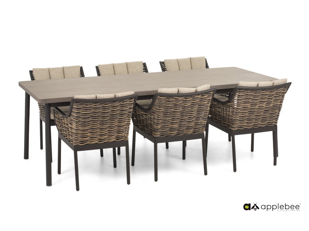 Jedálenská stolička Milou 62 x 48 x 82,5 cm, rám aluminium čierna, výplet Biculair® v prevedení Willow, BEE WETT® podsedák a zadný vankúš vo farbe prírodná šedá
