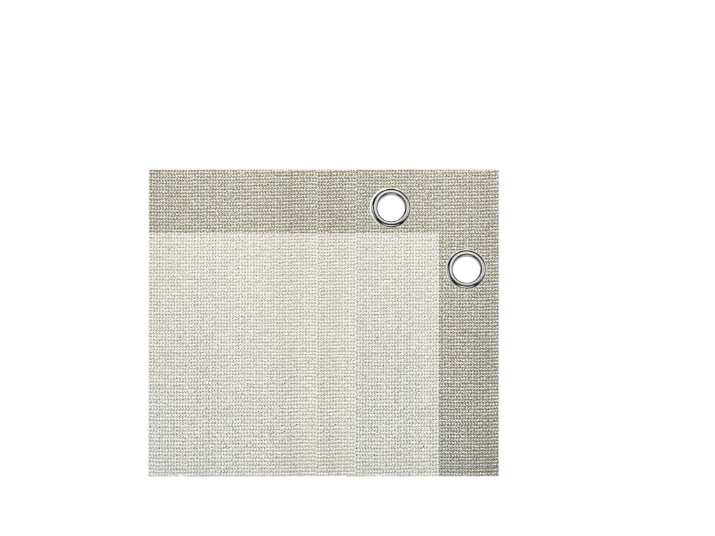 Táto farba je veľmi populárna. Svetlý prírodný / pieskový odtieň je pretkávaný s krémovým vláknom. Táto atraktívna farba sa dá dobre kombinovať s mnohými ďalšími odtieňmi. Vďaka špeciálnemu tkaniu z pásových vlákien je táto tkanina tiež o niečo viditeľnejšia. Má hmotnosť 250 gr/m2, zníženie vetra o 90% a tieňové percento najmenej 86%.