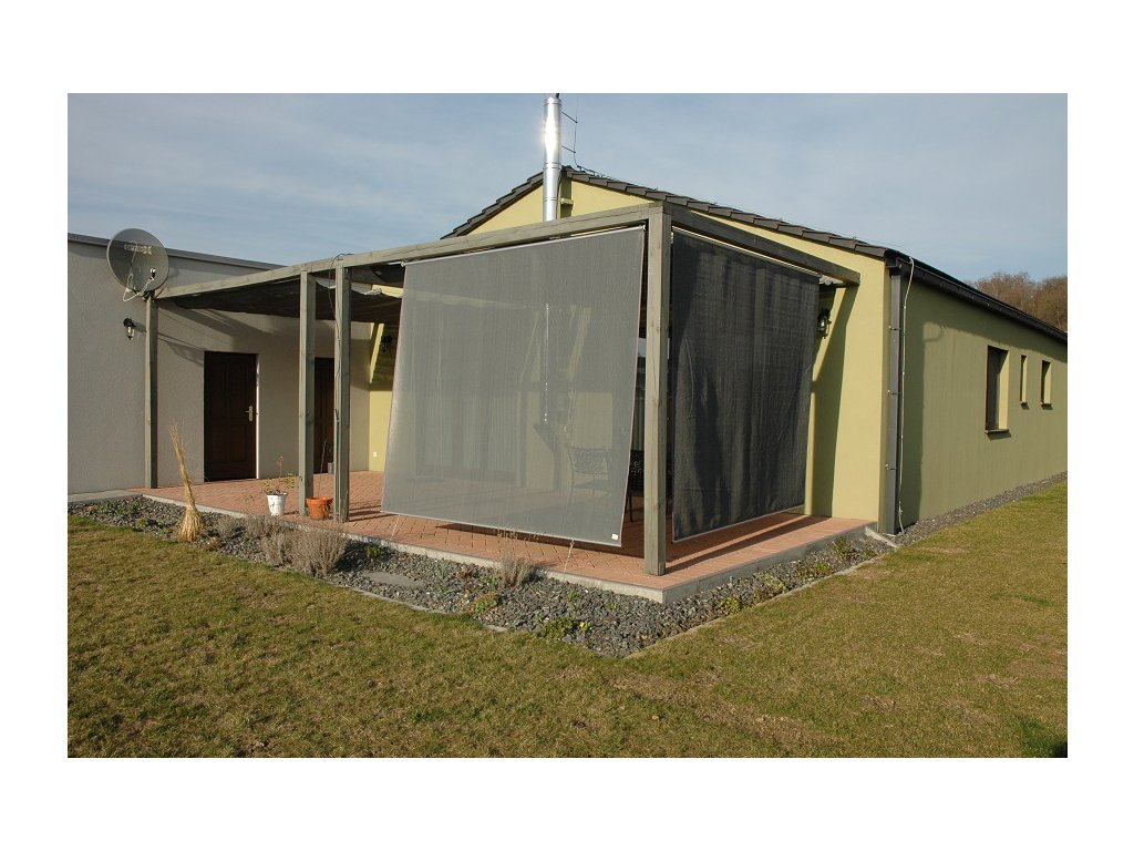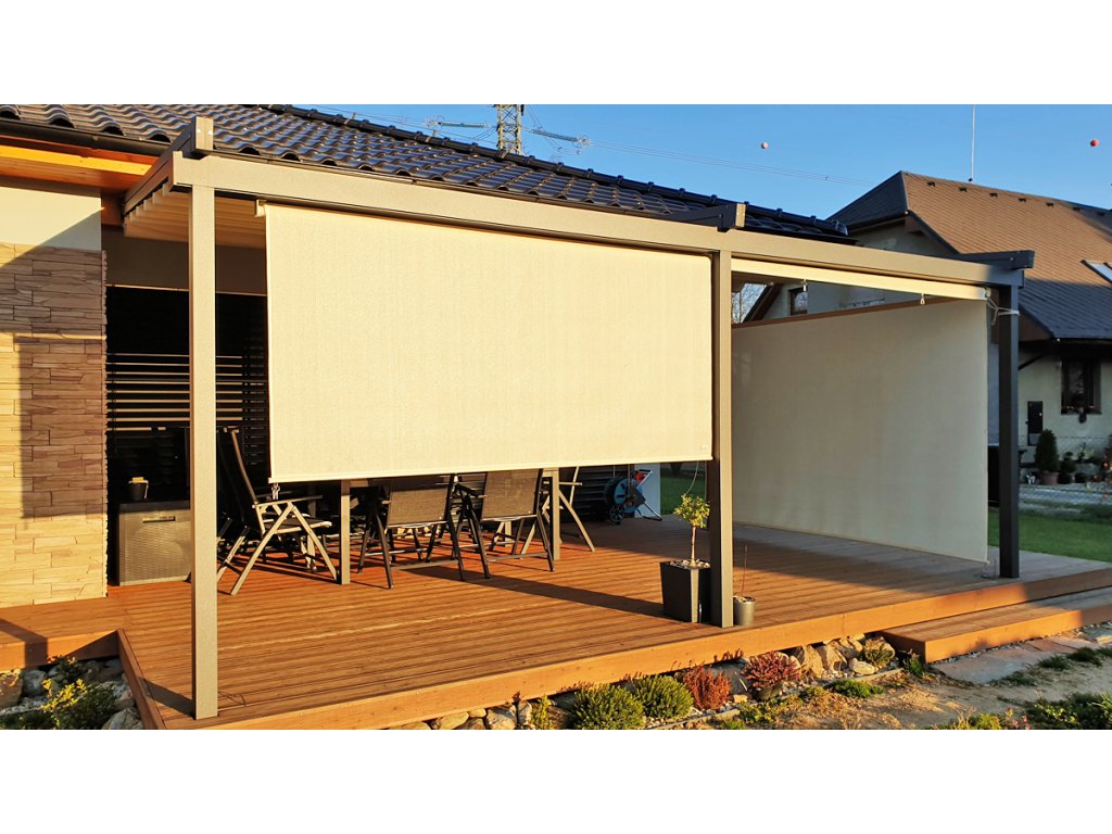 ** rolety odporúčame taktiež prichytiť na malé retiazky a karabínky do zeme, alebo obrubníka terasy. Vtedy môžete rolety používať aj pri slabom vánku