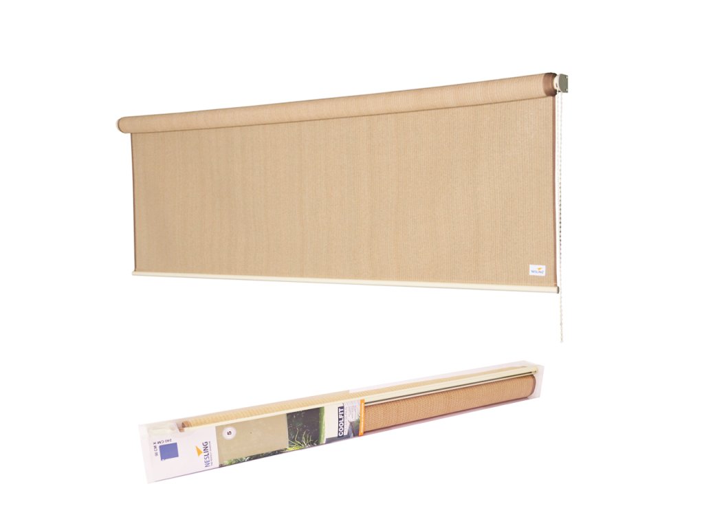 Roleta Coolfit je vyrobená z vysoko odolného polyetylénu HDPE (High-Density PolyEthylen), z ktorého sa vyrábajú aj vodovodné plastové trubky. Poskytuje až 95% ochranu pred UV žiarením. Látka je hrubotkaná (vrecovina), stálofarebná, mierne dierkovaná.