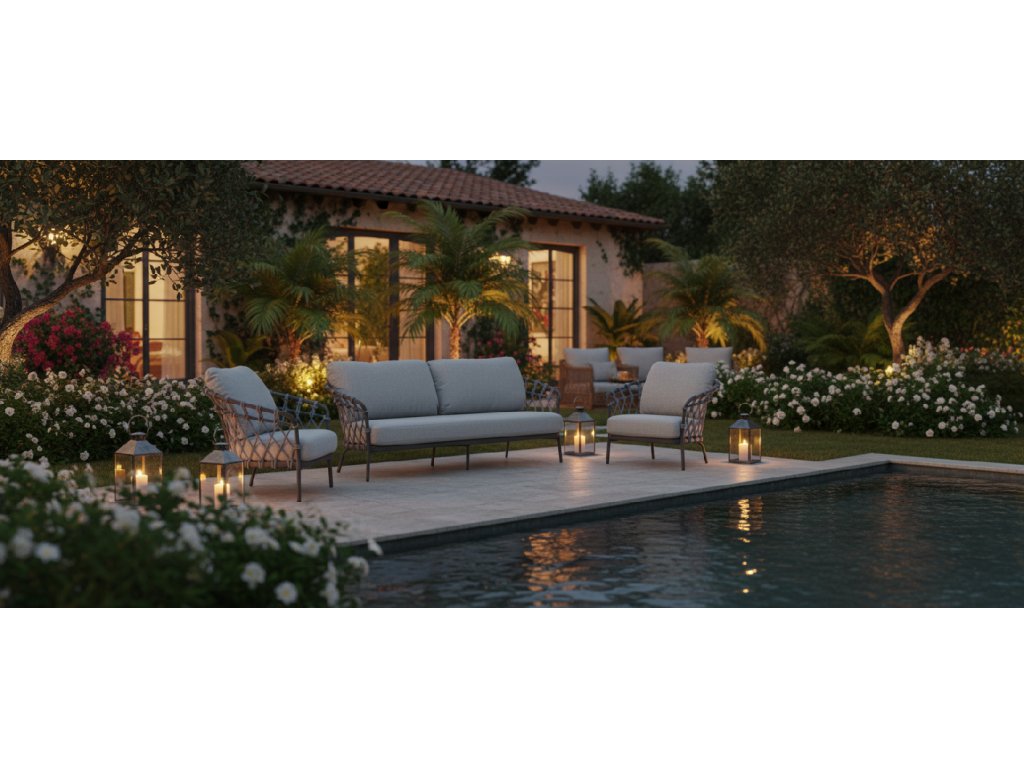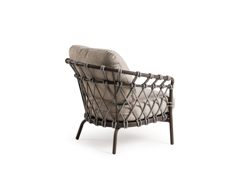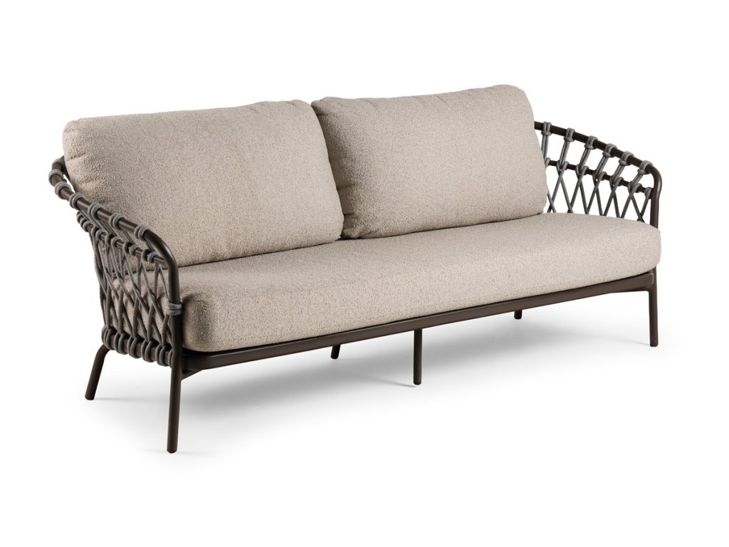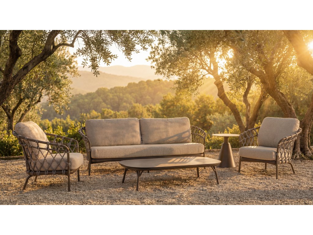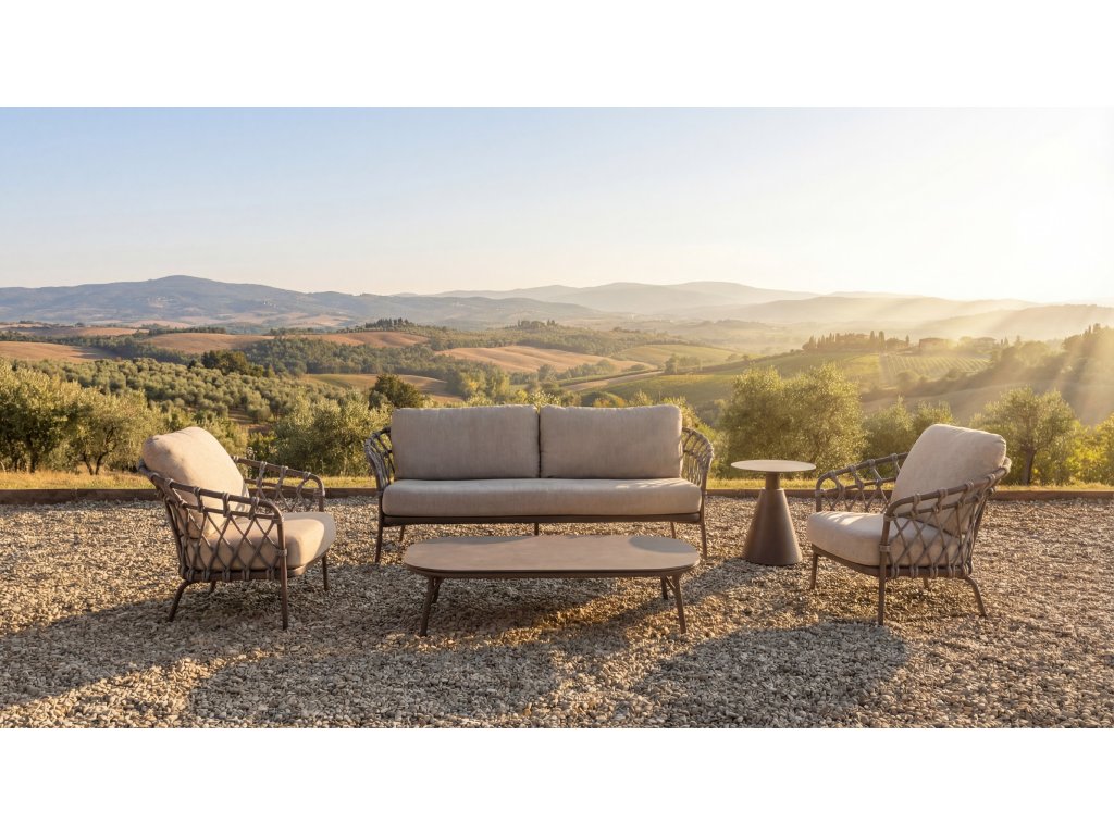 Moretti vyniká svojimi prepracovanými detailmi z lana a teplým, elegantným rámom. Otvorená štruktúra dodáva dizajnu vzdušný a prívetivý charakter, zatiaľ čo veľkoryso polstrované vankúše poskytujú vynikajúce pohodlie. Všetky vankúše sú čalúnené olefínovou látkou, vďaka čomu sú odolné, farebne stále a vhodné na vonkajšie použitie. Moretti prináša do záhrady uvoľnenú a sofistikovanú atmosféru.
