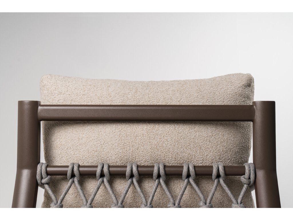 Oasis vyžaruje pokoj a eleganciu vďaka elegantnému hliníkovému rámu v teplom odtieni a jemným, príjemným líniám. Veľkoryso dimenzované vankúše čalúnené látkou Olefin vytvárajú uvoľnený a pohodlný pocit. Celkový vzhľad je moderný a nadčasový, čo umožňuje, aby sa Oasis bez námahy začlenil do minimalistických aj sviežich zelených záhrad.