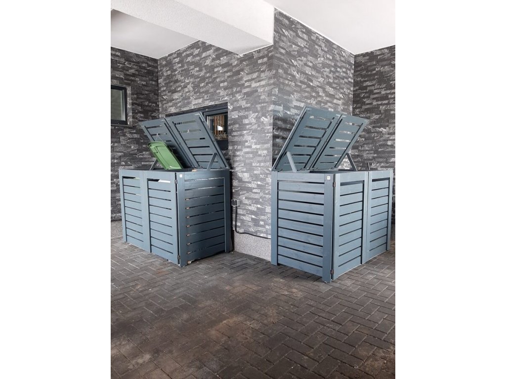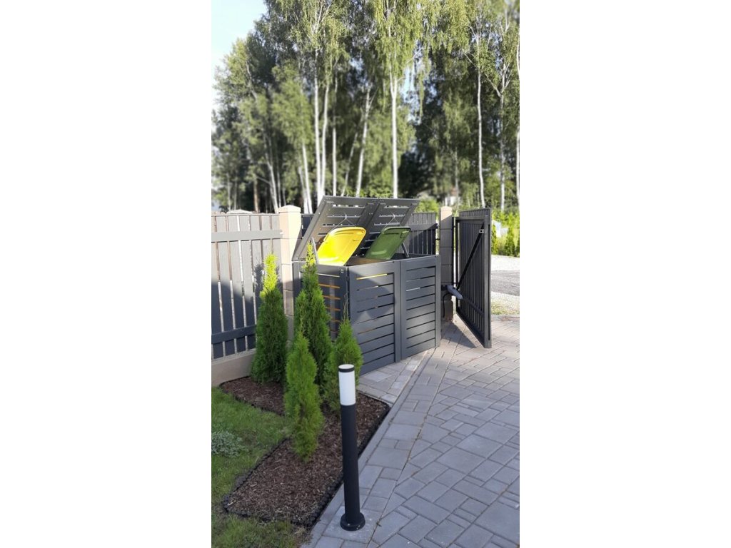 Krásny a kvalitný výrobok výrazne zlepší vzhľad vášho dvora a bude vám dlho slúžiť. Vďaka praktickým dvierkam z prednej strany a zdvíhacej strieške viete ľahko manipulovať s odpadom i so smetnými nádobami.