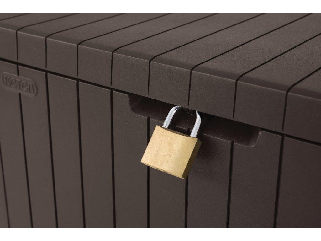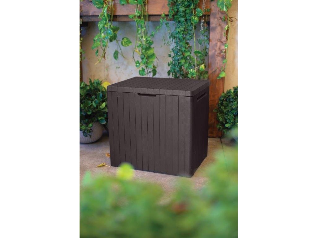 Výhodou tohto boxu je jednoduchá montáž (bez využitia náradia - všetko zložíte ako stavebnicu), vysoká kvalita boxu a moderný dizajn. Materiál má UV ochranu a je odolný nepriazni počasia. Úložný box možno využiť aj ako dizajnový stolček. Potrebujete ukryť rôzne drobné predmety, ale nemáte v obývačke miesto na ďalší kus nábytku? Žiadny problém - CITY STORAGE BOX môžete uložiť na balkón bez toho, aby ste sa museli obávať nízkych teplôt alebo UV žiarenia.