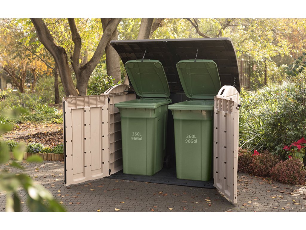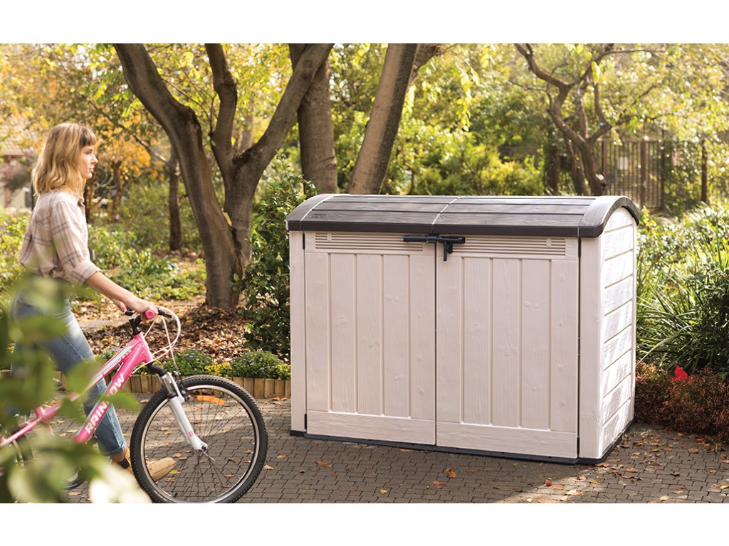 - vďaka veľkej kapacite 2000 l sa do nej zmestí všetko, od záhradného nábytku a kosačiek na trávu až po grilovacie zariadenia, bazénové čerpadlá a bicykle
