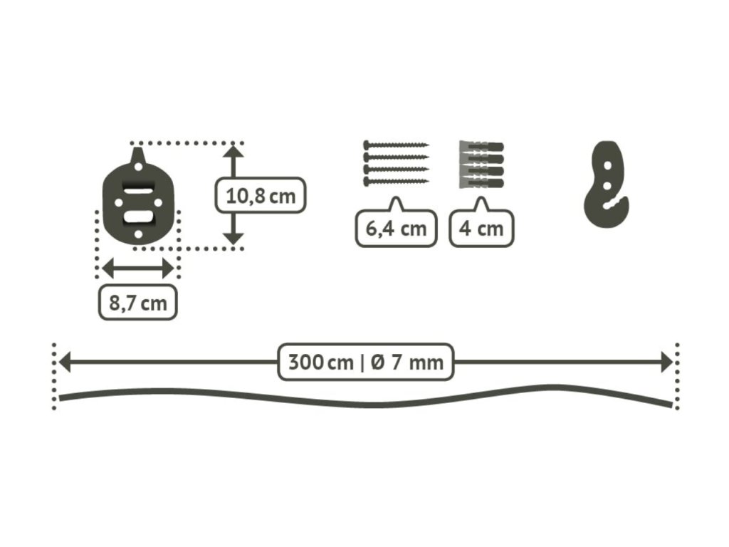 Viacúčelové uchytenie pre hojdacie kreslá a vaky. S novým patentovaným "MultiSpotem", ktorý poskytuje flexibilné zavesenie počas sekúnd. Odolný, sklenenými vláknami zosilnený, hák "SmartHook" umožňuje jednoduché nastavenie.