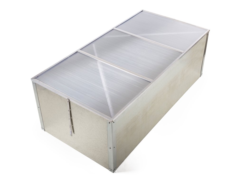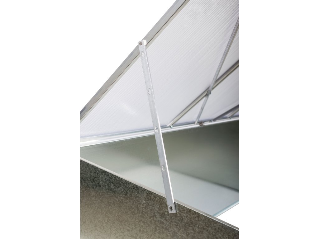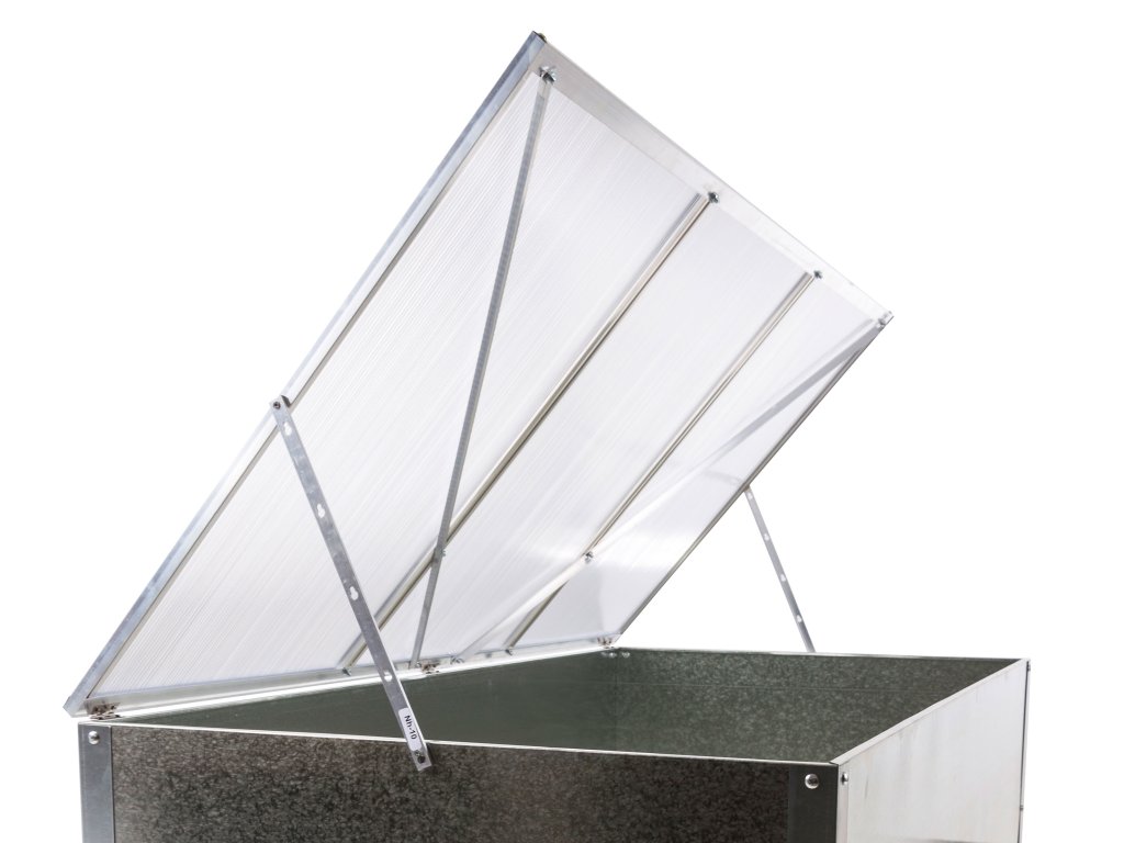 Horný alumíniový rám s výplňou z kvalitného 4mm polykarbonátu vám pri sadbe a starostlivosť o zasadené rastliny umožní pohodlný prístup vďaka variabilnému nastaveniu v požadovanej polohe.