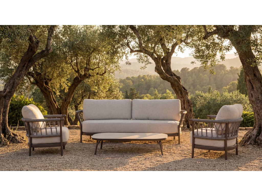 Séria Fresca kombinuje jemné, zaoblené línie s decentnými detailmi z výpletu, čím vytvára ľahký a elegantný vzhľad. Veľkorysé sedenie a oporné chrbtové vankúše ponúkajú uvoľnenú úroveň pohodlia, ideálnu pre dlhé chvíle strávené vonku. Všetky vankúše sú čalúnené látkou Olefin, ktorá bola zvolená pre svoju odolnosť, farebnú stálosť a príjemnú textúru. Fresca dodáva záhrade pokojnú, modernú eleganciu.