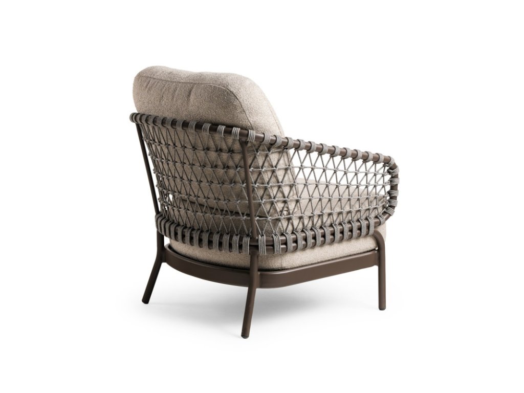 Juno kombinuje rafinovaný kovový rám s ručne tkaným olefínovým lanom, čím vytvára otvorený a vzdušný vzhľad. Veľkoryso vyplnené vankúše, čalúnené olefínovou látkou, poskytujú hlboké pohodlie pri sedení. Vyvážené proporcie a jemné detaily robia z Juno pokojný, no zároveň výrazný prvok v záhrade.