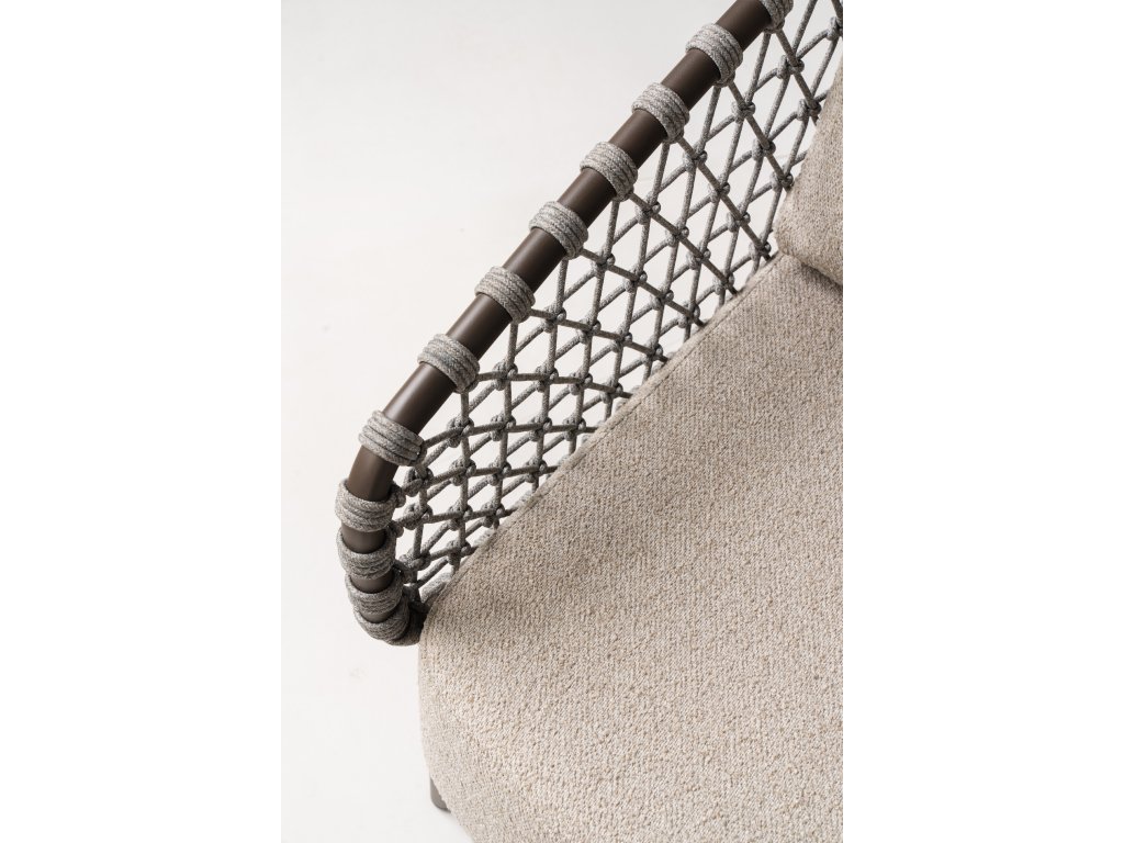 Juno sedacia súprava kombinuje rafinovaný kovový rám s ručne tkaným lanom, čím vytvára otvorený a vzdušný vzhľad. Je ideálna pre tých, ktorí hľadajú štýlový a funkčný nábytok do záhrady.