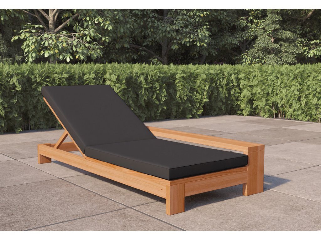 Masívne lehátko je z neošetreného teaku a neobsahuje podsedák - podušku na ležanie (možnosť dokúpiť samostatne). Lehátko má možnosť nastavenia zadnej opierky chrbta a pozdĺž jednej strany sa nachádza opierka rúk, ktorá môže slúžiť i ako praktický stolík.