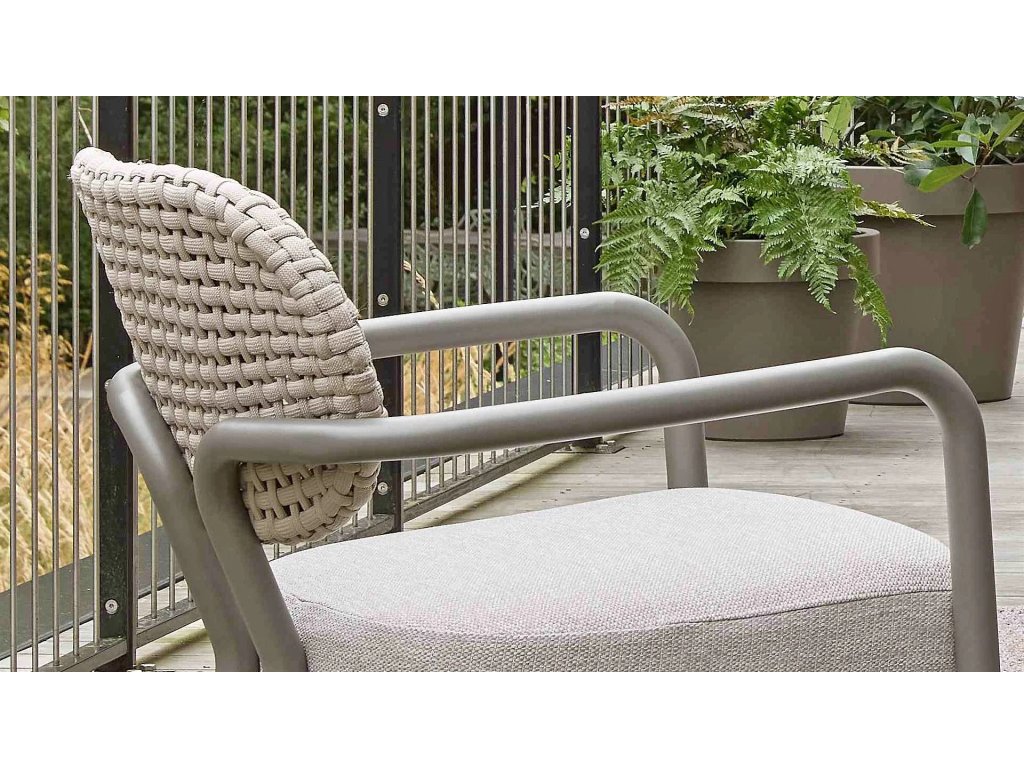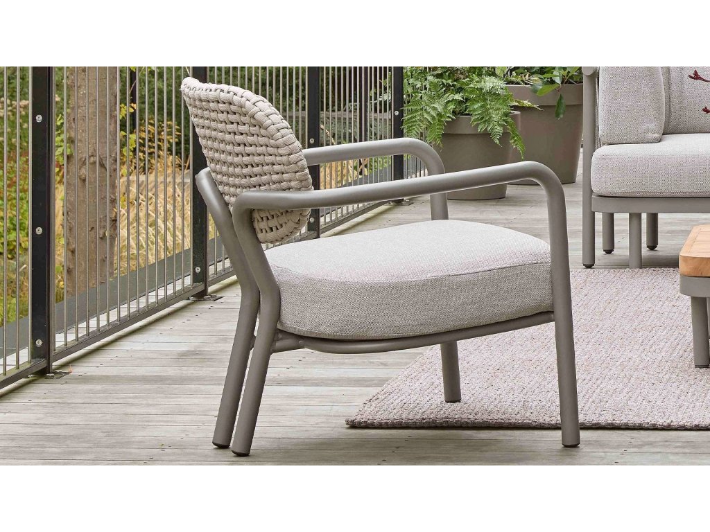 1x LUGANO kreslo, rám TAUPE, sedák, lano MID GREY vankúš opierka BeeWett dymová šedá, 74x77,5x81 cm