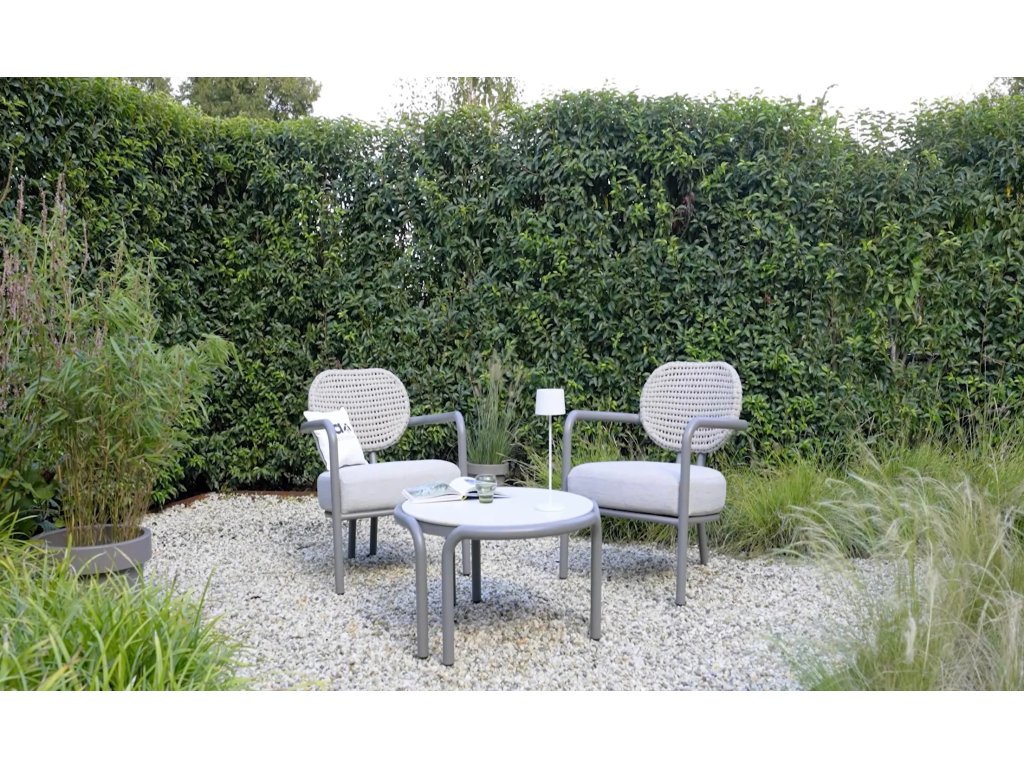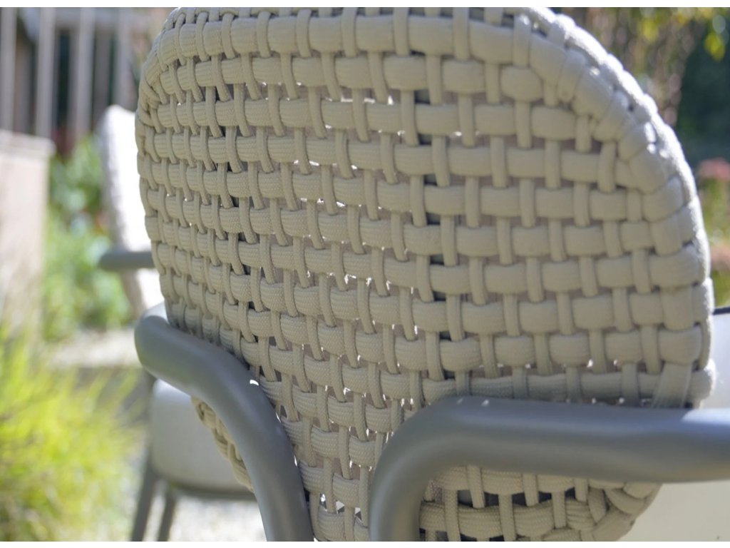 Kreslo Lugano má pevný hliníkový rám, ktorý je nielen ľahký, ale aj veľmi odolný. Operadlo je vyrobené z elegantného pleteného lana, ktoré dodáva prirodzený a luxusný vzhľad. Kreslo dopĺňa pohodlný podsedák do každého počasia; je odolný voči dažďu a rýchlo schne, takže si svoju záhradu či terasu môžete vždy užívať bez akejkoľvek starostlivosti.