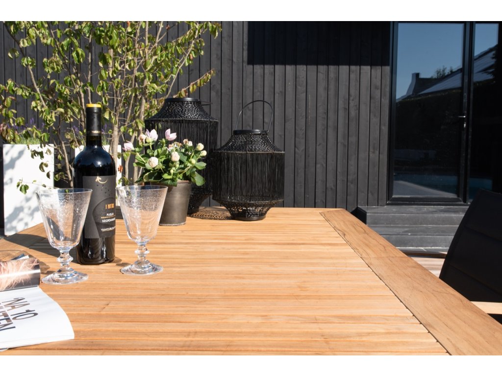 Jedálenský stôl Elle má moderný a elegantný vzhľad. Doska je vyrobená z teakového dreva, ktoré vkusne ladí s čiernou farbou rámu.