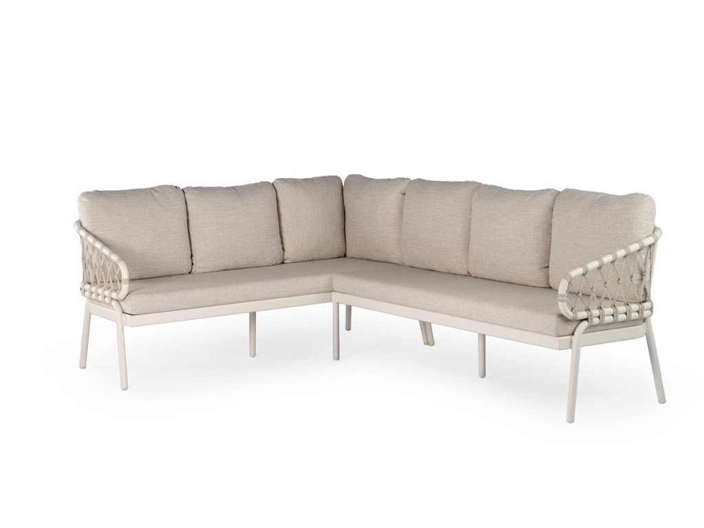 • 1ks rohová jedálenská súprava Natal krémová ľavá 265 x 200 x 98 cm, rám Creme White, s vankúšmi v jemnej farbe - Dove Olefin