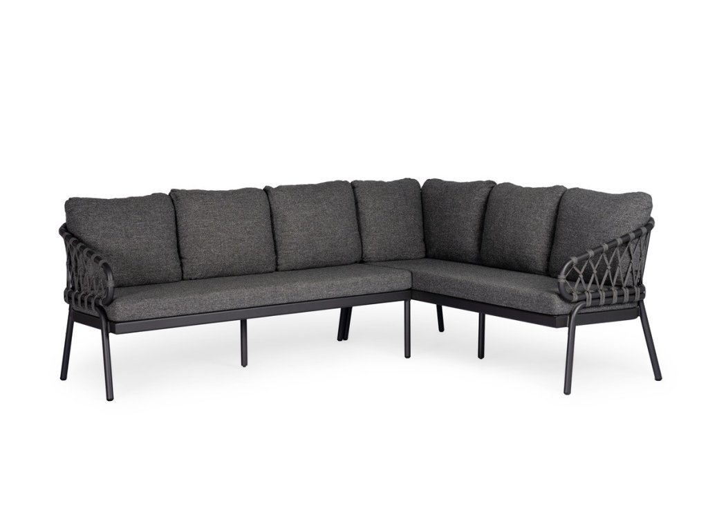 • 1ks rohová jedálenská súprava Natal šedá pravá 265 x 200 x 98 cm, rám Charcoal, s vankúšmi v jemnej farbe - Stone Grey Olefin