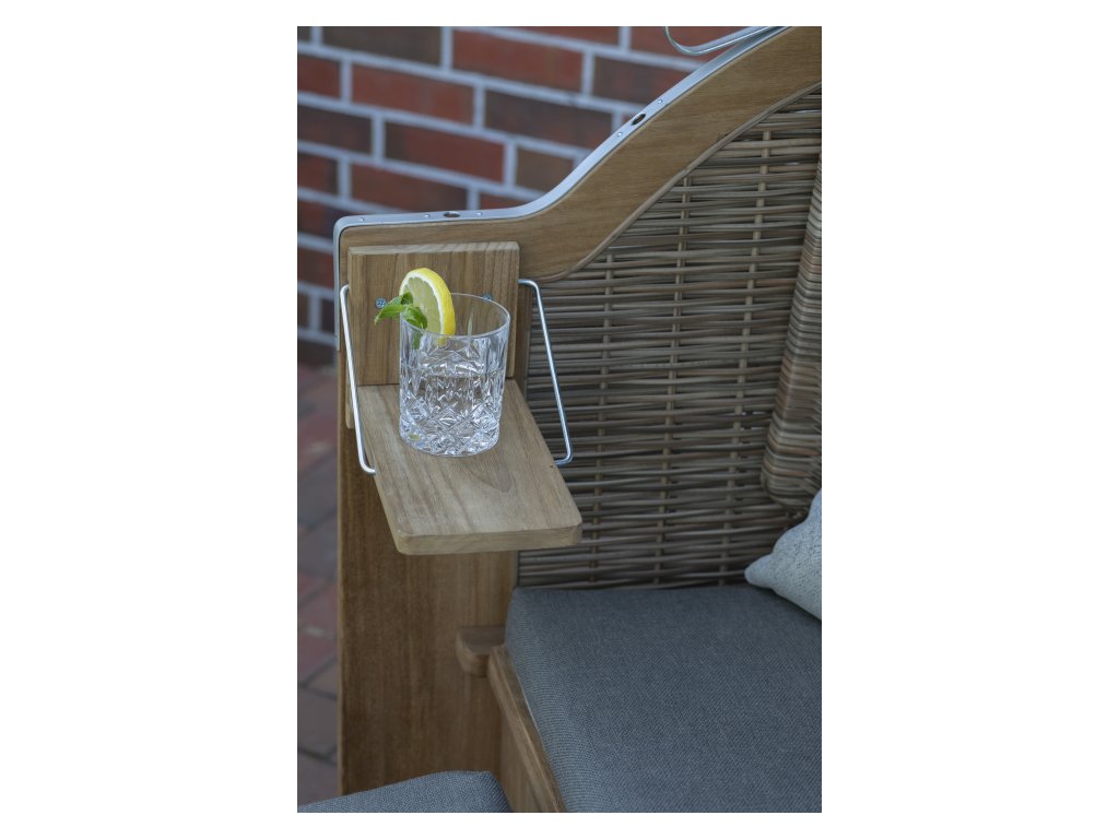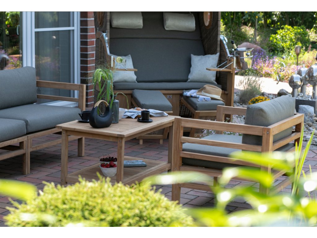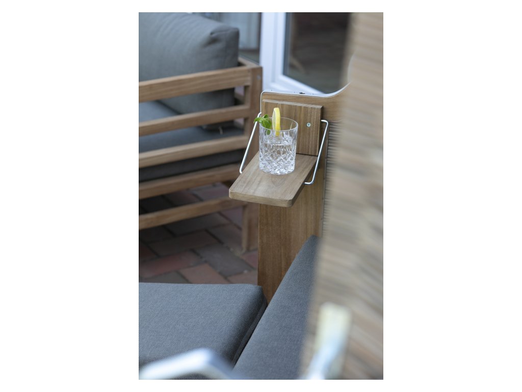 Konferenčný stolík Mura je praktickou súčasťou sedacej súpravy. Na jeho vonkajšej strane nájdete dva odnímateľné, štýlové a praktické podnosy z teaku.