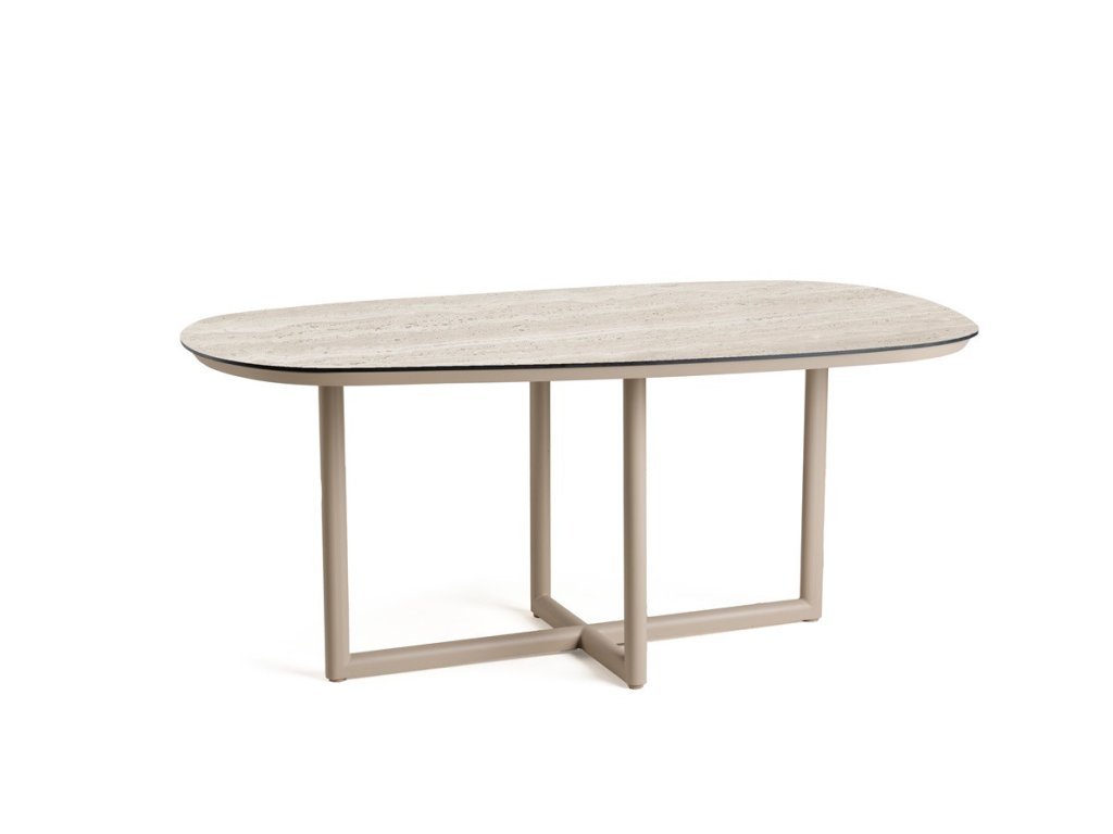 • 1ks jedálenský stôl RIVERA Trespa Champagne Organic 180 x 100 x 74 cm, rám Champagne, doska Trespa Travertin, alebo Ophira