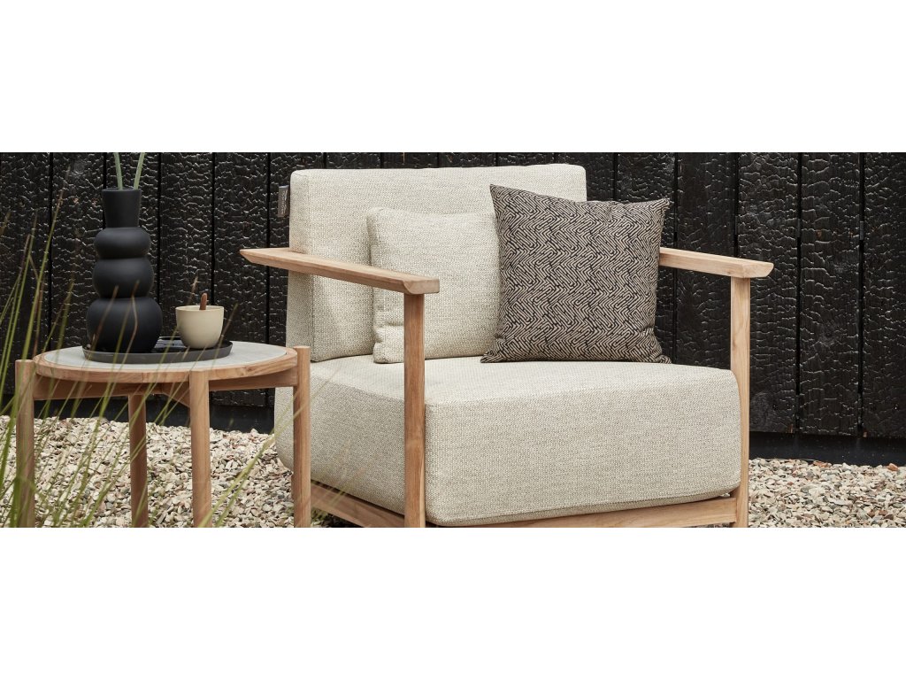 K dispozícii sú dva rôzne zodpovedajúce stolíky, obdĺžnikový konferenčný stolík a okrúhly príručný stolík. Obe majú rovnako krásny teakový rám a keramickú stolovú dosku s motívom travertínu krémovej farby. To dokonale ladí so zvyškom farebnej palety. Urobte si jednu dlhú pohovku s dvoma pohovkami alebo vytvorte priestranné rohové usporiadanie s 3 alebo dokonca 4 pohovkami. Chcete pridať samostatné kreslo?
