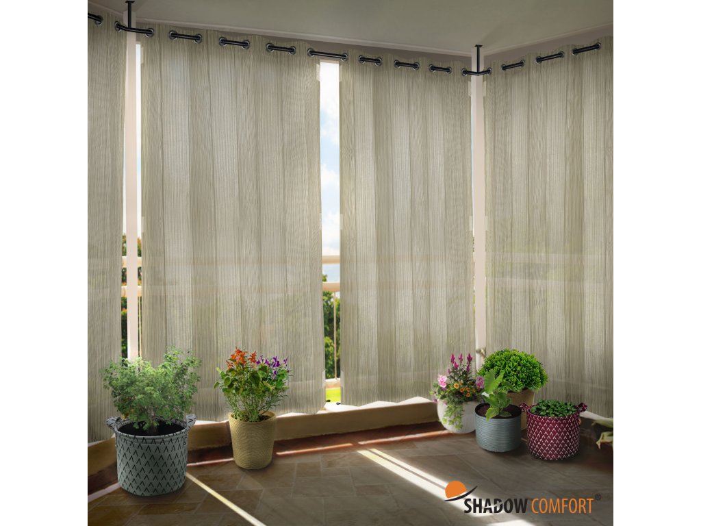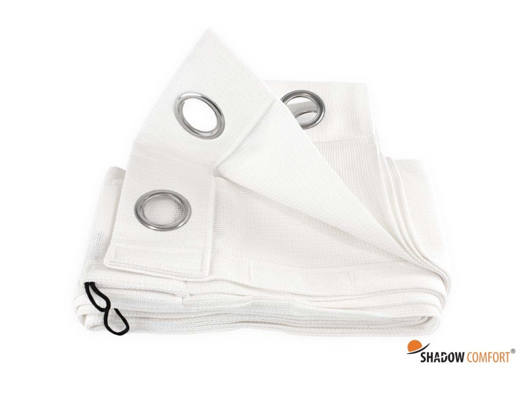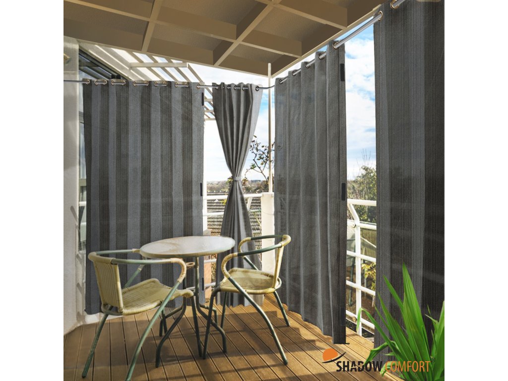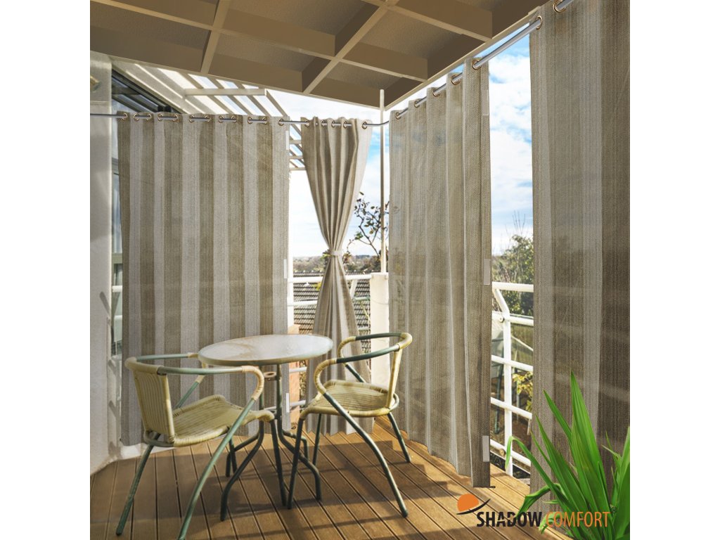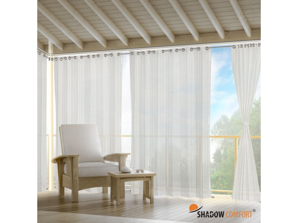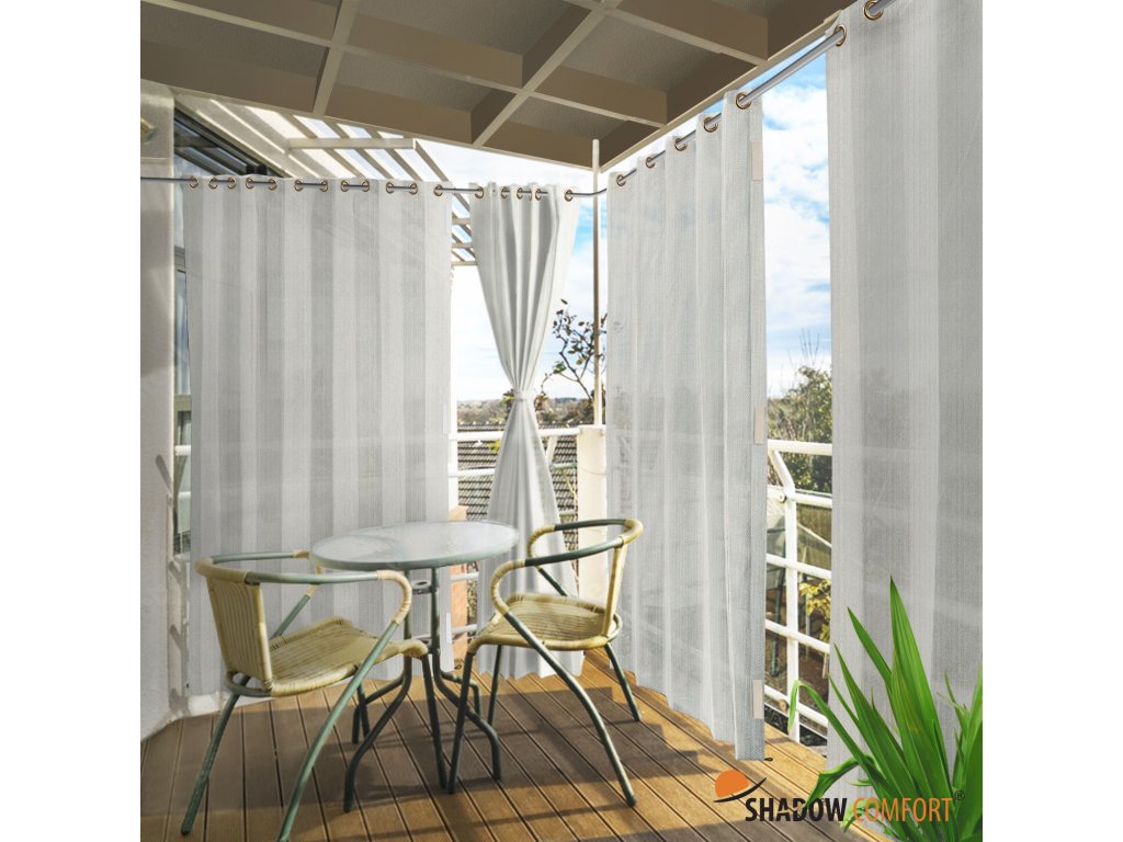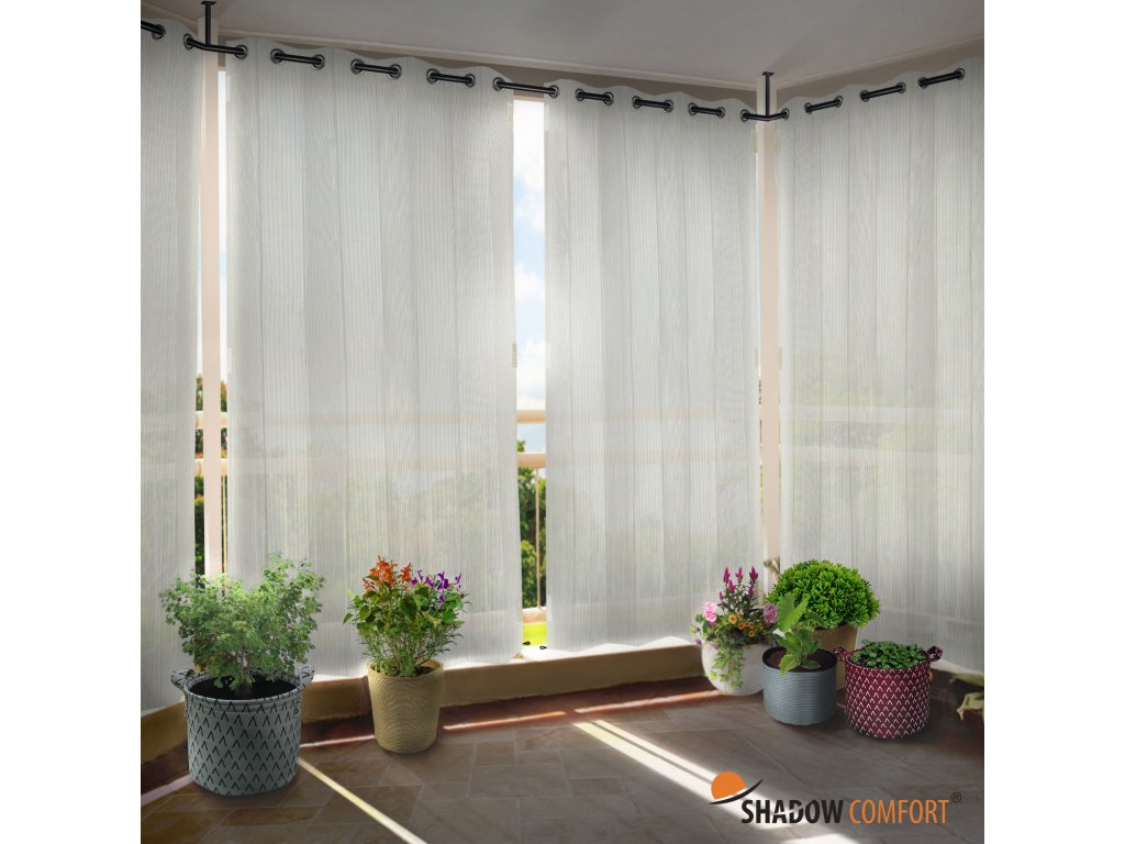 Vonkajšie závesy sú jednoduché, ale efektívne, vyrobené z vysokokvalitného materiálu HDPE. V lete si vďaka nim vytvoríte zatienené a chladnejšie miesto, kam nepreniknú slnečné lúče. Počas zimy si vnútorný priestor viete vykúriť, treba však dávať pozor na to, aby bolo vykurovacie teleso v dostatočnej vzdialenosti od závesov. Vonkajšie závesy sú priedušné, v prípade bočného dažďa po nich bude voda stekať dole a v prípade vystavenia slnečným lúčom nestratia farbu.