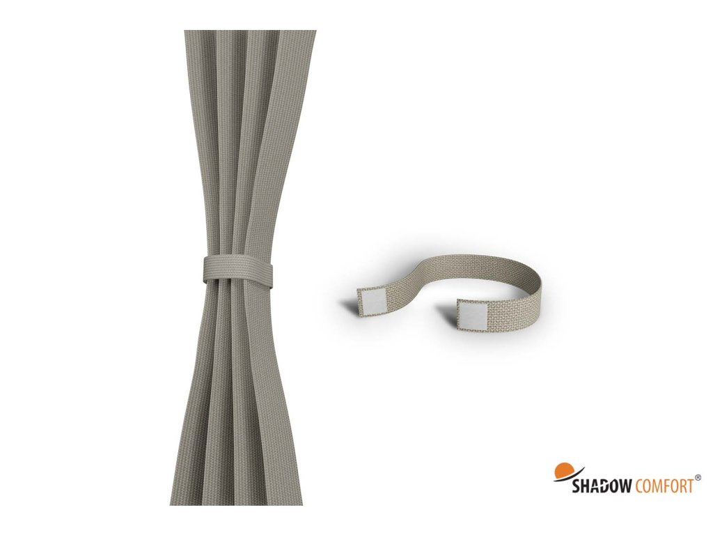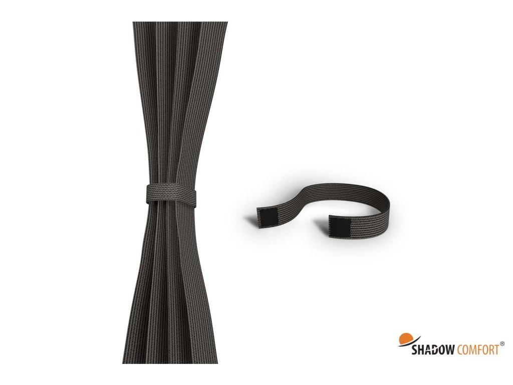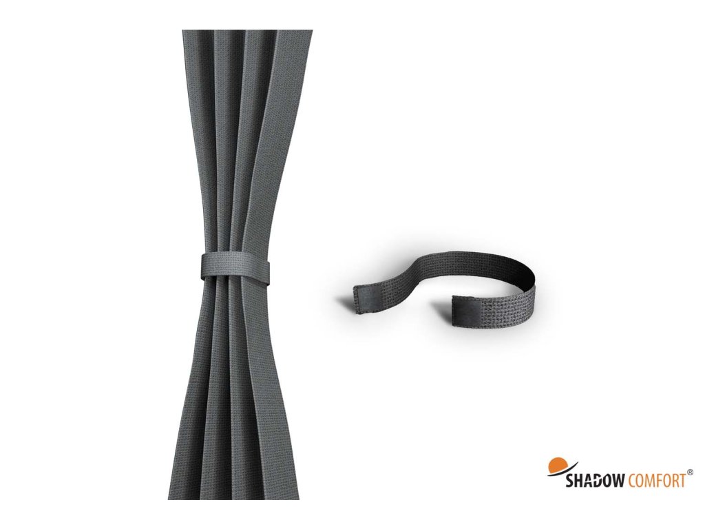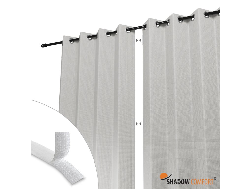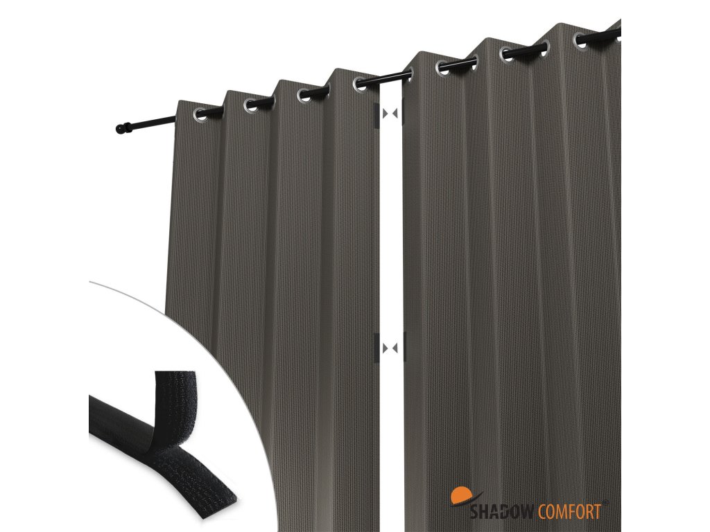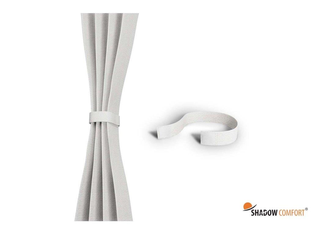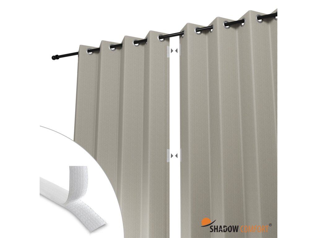 Závesy sú vybavené krúžkami z nehrdzavejúcej ocele a v strede ich môžete spojiť suchým zipsom. Po stranách majú očká, takže ich môžete prichytiť aj po bokoch. V spodnej časti sa nachádzajú elastické slučky pre dodatočné utiahnutie.